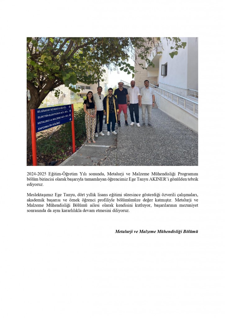 Metalurji ve Malzeme Mühendisliği Bölümü
