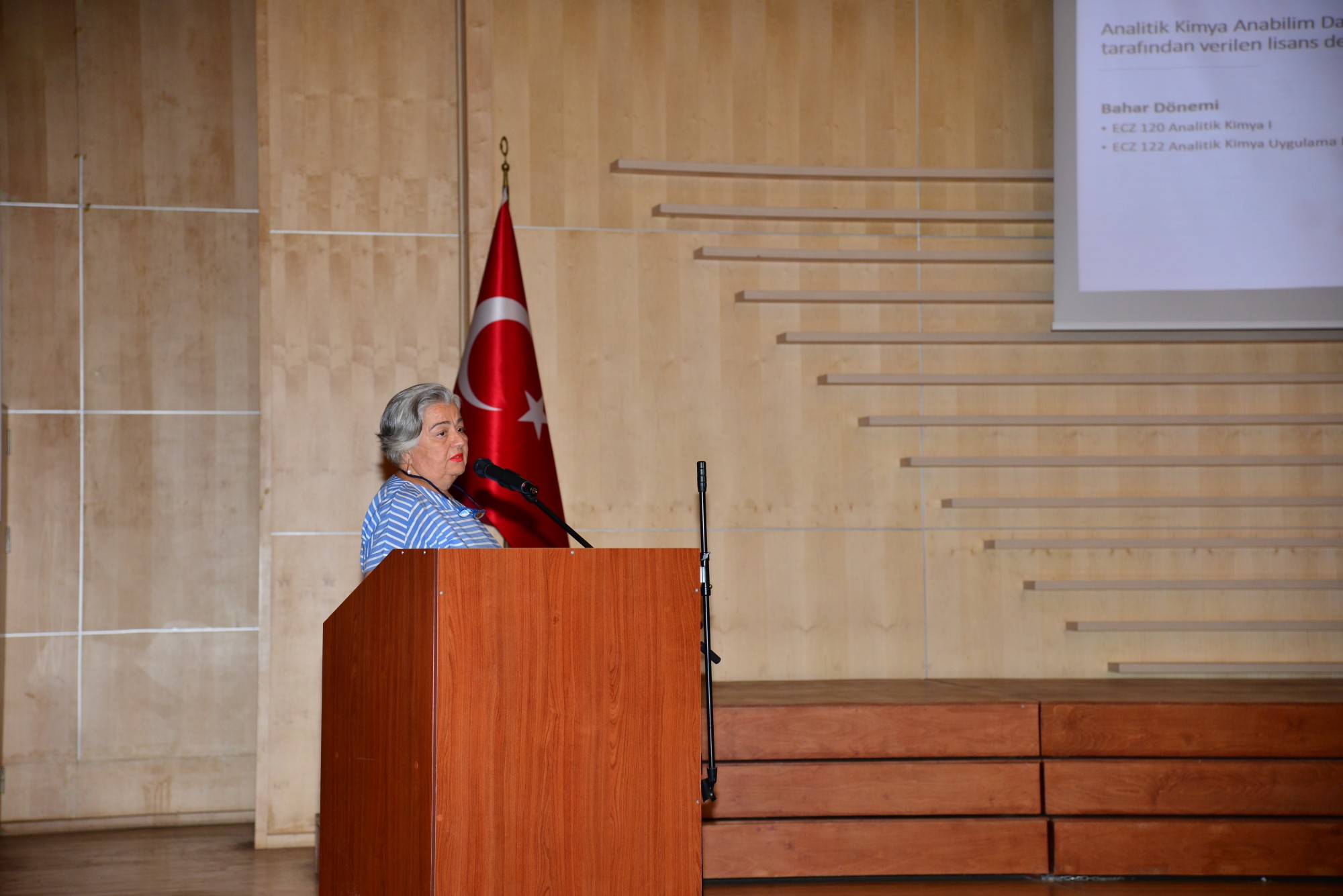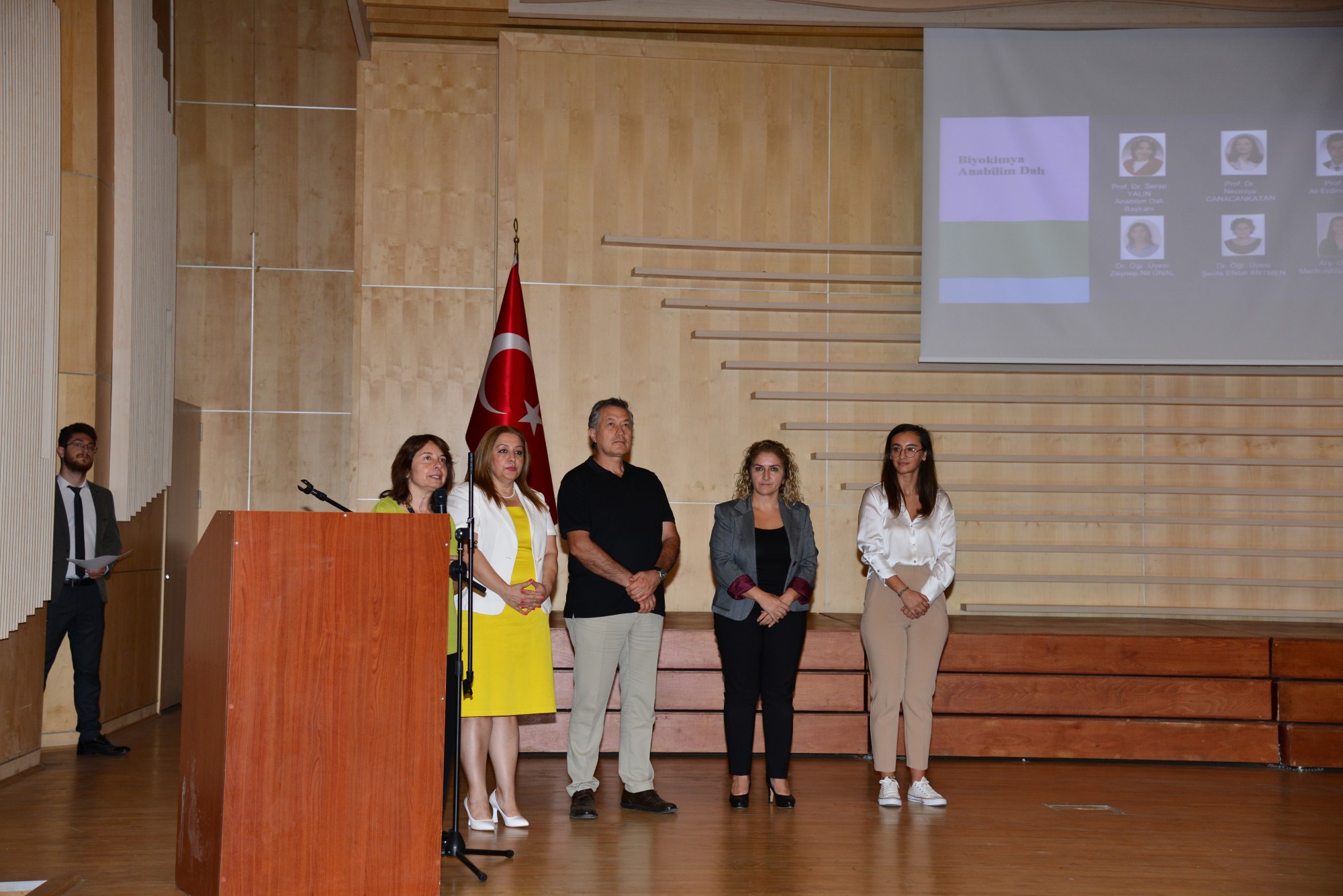 Eczacılık Fakültesi Oryantasyon programına Temel Eczacılık Bilimleri Bölümünde yer alan Biyokimya Anabilim Dalı Başkanı Prof. Dr. Serap YALIN; Analitik Kimya Anabilim Dalı Başkanı Prof. Dr. Fadime Nazlı DİNÇER KAYA; Farmasötik Mikrobiyoloji Anabilim Dalı Başkanına vekaleten Doç. Dr. Mahmut ÜLGER; Eczacılık Meslek Bilimleri Bölümünde yer alan Farmakognozi Anabilim Dalı Başkanı Prof. Dr. Gamze KÖKDİL; Farmakoloji Anabilim Dalı Başkanı Prof. Dr. Seyhan ŞAHAN FIRAT; Farmasötik Kimya Anabilim Dalı Başkanı Prof. Dr. Semra UTKU; Farmasötik Toksikoloji Anabilim Dalı, Başkanına vekaleten Doç. Dr. Zuhal UÇKUN ŞAHİNOĞULLARI; Klinik Eczacılık Anabilim Dalı Başkanı Prof. Dr. Necmiye CANACANKATAN Eczacılık Teknolojisi Bölümünde yer alan Farmasötik Teknoloji Anabilim Dalı ve Farmasötik Biyoteknoloji Anabilim Dalı Başkanı Prof. Dr. Nefise Özlen ŞAHİN ve Eczacılık Fakültesi öğretim üyeleri katıldı. Anabilim Dalı Başkanları tarafından her bir Anabilim Dalına ait eğitim öğretim süreçleri anlatılarak ve Anabilim Dalında bulunan Öğretim Üyelerinin tanıtımı gerçekleştirildi.
