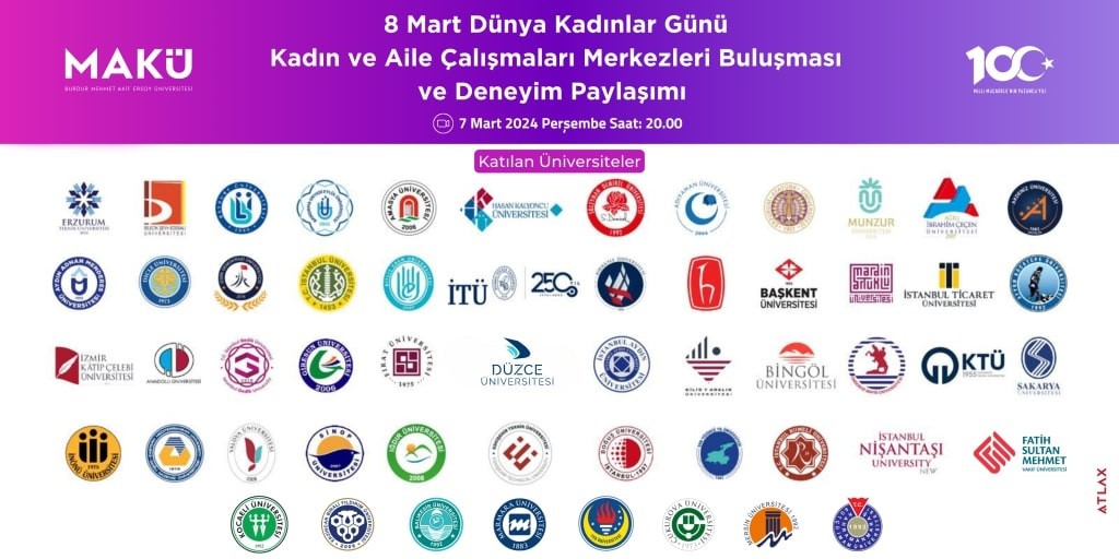 Burdur Mehmet Akif Ersoy Üniversitesi (MAKÜ) Kadın ve Aile Çalışmaları Uygulama ve Araştırma Merkezi öncülüğünde Dünya Kadınlar Günü’ne yönelik olarak üniversitelerarası merkez buluşmaları gerçekleştirildi. 58 Üniversitenin katıldığı 8 Mart Dünya Kadınlar Günü buluşmasında Kadın ve Aile Çalışmaları alanlarında kurulmuş olan merkezler bir araya geldi. Merkez temsilcilerinin tek tek söz aldığı toplantıda MERKAM Müdürü Doç. Dr. Aysun YARALI AKKAYA, faaliyetlerine 1997 yılında başlayan MERKAM’ın bu alanda kurulan ilk merkezler arasında yerini aldığını belirtti.