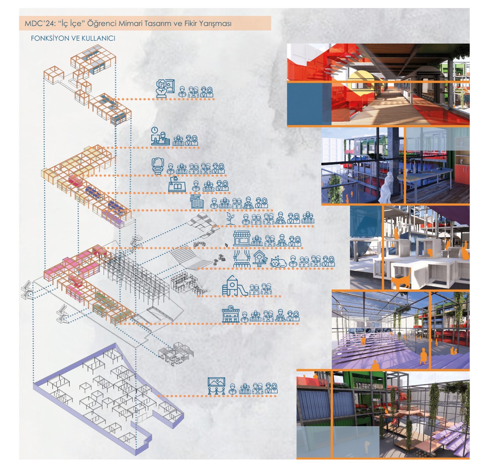 Mimarlık Fakültesi, Mimarlık Bölümü öğrencileri Ezgi Erkul, Adnancan Akarfırat ve Salih Erkök tarafından "MDC’24: İç İçe” başlıklı ulusal öğrenci mimari tasarım ve fikir yarışması için hazırlanan mimari tasarım projesi eşdeğer ödül kazandı.
