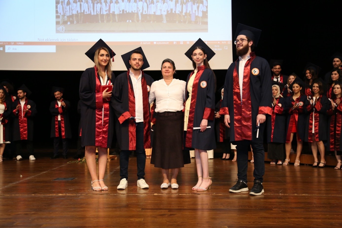 Mezunlarımıza ve ailelerine seslenen Prof. Dr. Necmiye CANACANKATAN, “Değerli aileler, yıllardır eğitimleri için birçok özveride bulunduğunuz evlatlarınız, artık eczacı olarak toplumdaki yerlerini alıyorlar. Sizleri en içten dileklerimle kutluyor, bundan sonraki yıllarda da evlatlarınızın mesleki başarılarına tanıklık etmenizi diliyorum. Değerli mezunlarımız, bugün edeceğiniz yemin ile meslektaşımız olarak birinci basamak sağlık hizmetinde yer alacaksınız. Sürekli gelişen ve yenikliklere açık eczacılık alanında yaşam boyu bilgilerinizi güncel tutmanız gerekmektedir. Mesleki gelişimlerinizi lisansüstü programlar ve uzmanlık alanlarıyla daha üst düzeylere taşımalısınız. Kariyerinizde en üst düzeylere ulaşacağınızdan eminim. Unutmayınız ki tüm hedeflerinizde ve her ihtiyaç anınızda yanınızda olacağız. Genç meslektaşlarım; inanıyorum ki hastalarına aklın, vicdanın ve bilimin yolunda nitelikli sağlık hizmeti veren eczacılar olarak bizleri gururlandıracaksınız. Sizler, mesleğimizin geleceğisiniz. Hepinize sağlıklı, mutlu ve başarılı bir yaşam dilerim. Yolunuz ve bahtınız açık olsun.” şeklinde konuştu.