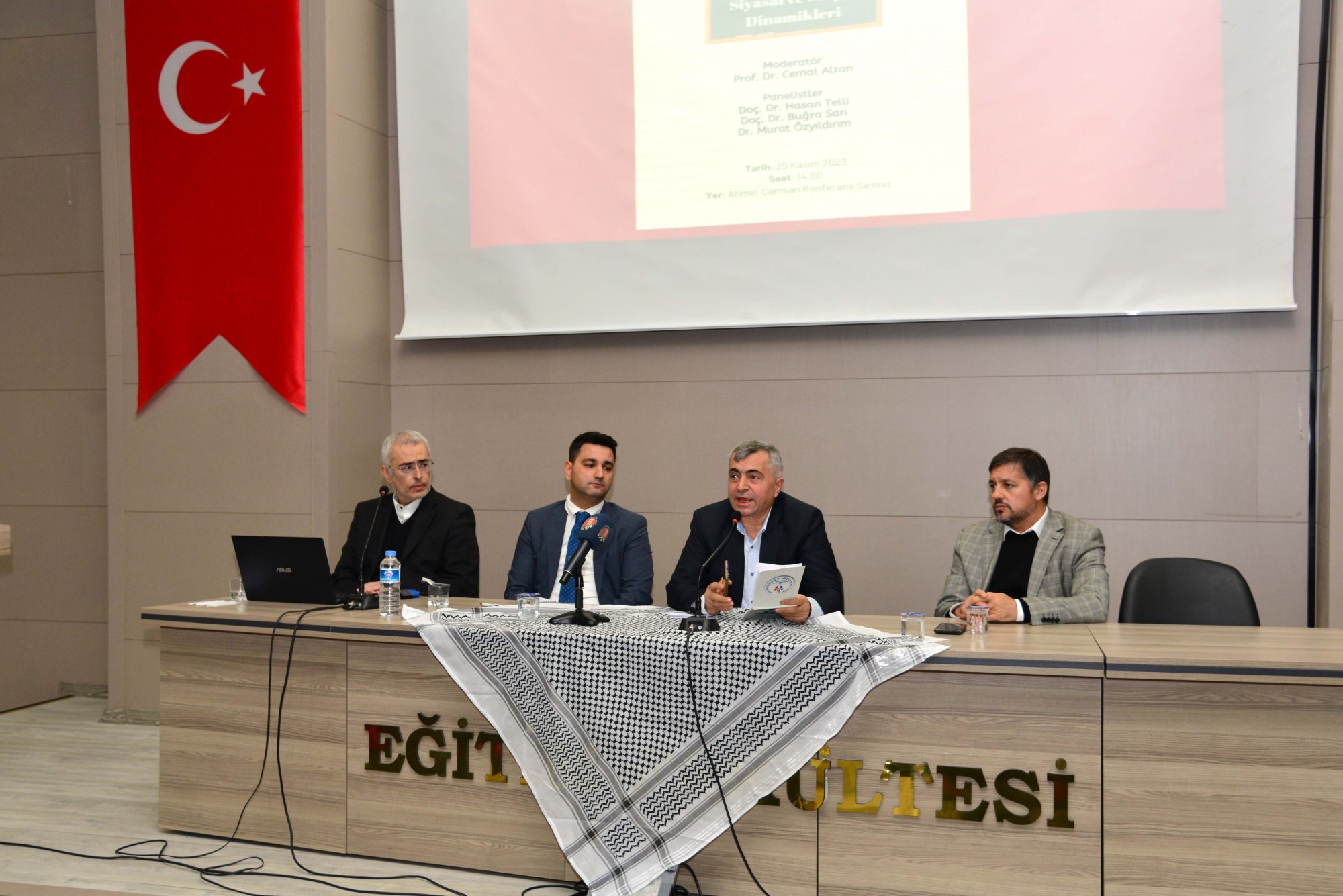 Filistin'de yaşanan acı ve trajedinin tam olarak anlaşılabilmesi ve farkındalık yaratmak amacıyla; İlahiyat Fakültemiz, "Filistin Meselesinin Tarihi, Siyasal ve Sosyal Dinamikleri" adı altında bir panel düzenledi.