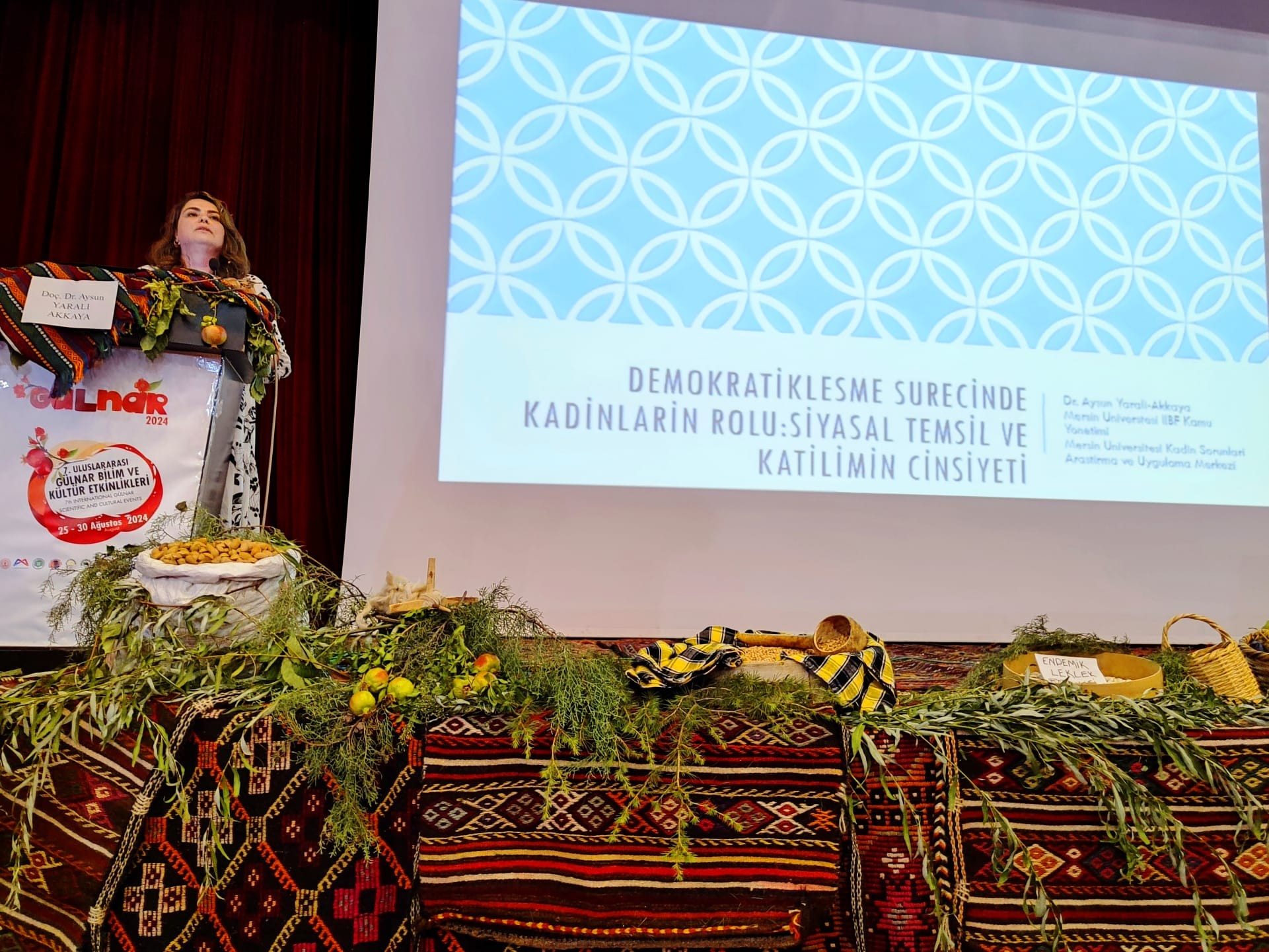 Etkinlik kapsamında Mersin Üniversitesi Kadın Sorunları Uygulama ve Araştırma Merkezi (MERKAM) ile Yörük Kültürü Uygulama ve Araştırma Merkezi (YORMER) “Kadın ve Sürdürülebilirlik” temalı bilimsel toplantıda yer aldı. MERKAM Müdürü Doç. Dr. Aysun Yaralı Akkaya gerçekleştirilen bilimsel etkinlikte “Katılımın Cinsiyeti: Siyasetin Dönüşümünde Kadınların Rölü” başlıklı bir sunum gerçekleştirdi. Sunum öncesinde katılımcılara MERKAM’ın çalışmaları hakkında bilgi aktaran Doç. Dr. Aysun Yaralı Akkaya, Gülnar özelinde gerçekleştirilen bu kapsamlı etkinlikte bulunuyor olmaktan ötürü duydukları mutluluğu dile getirdi.