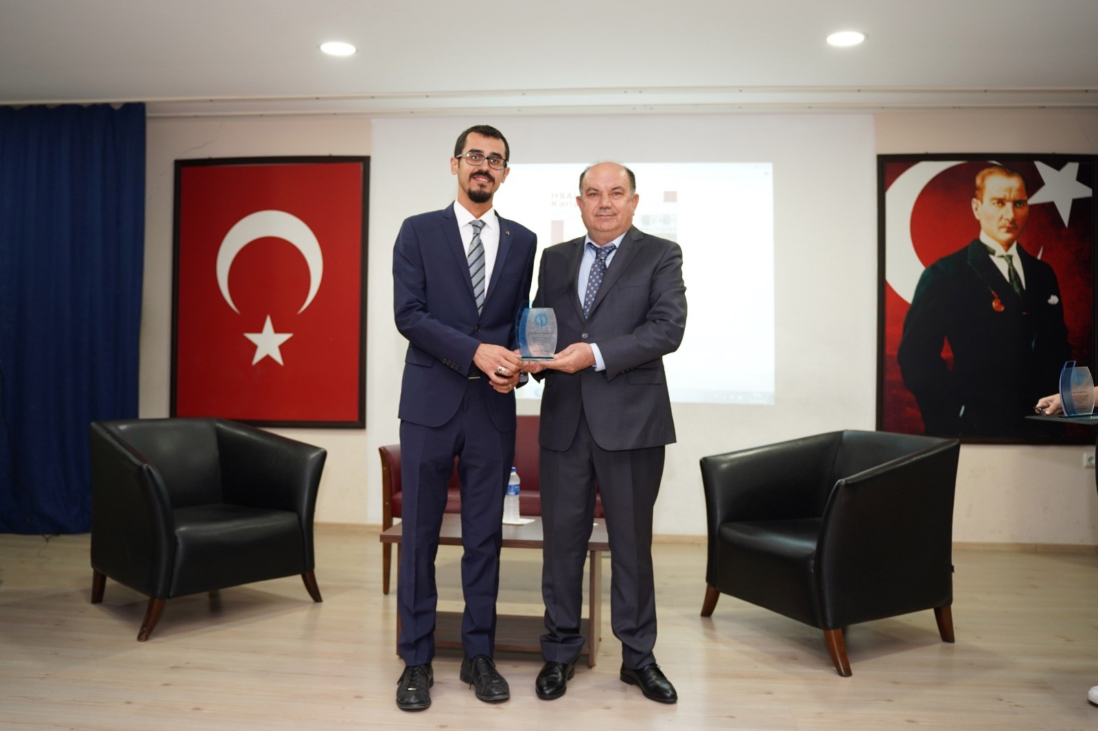 Sunumların ardından Hacı Sabancı Anadolu Lisesi Müdürü Musa Malkoç tarafından Rektörümüz Prof. Dr. Erol Yaşar, Teknik Bilimler MYO Müdürümüz Doç. Dr. Sertaç Göktaş ve Öğr. Gör. Burak Şahin’e plaket takdim edildi.