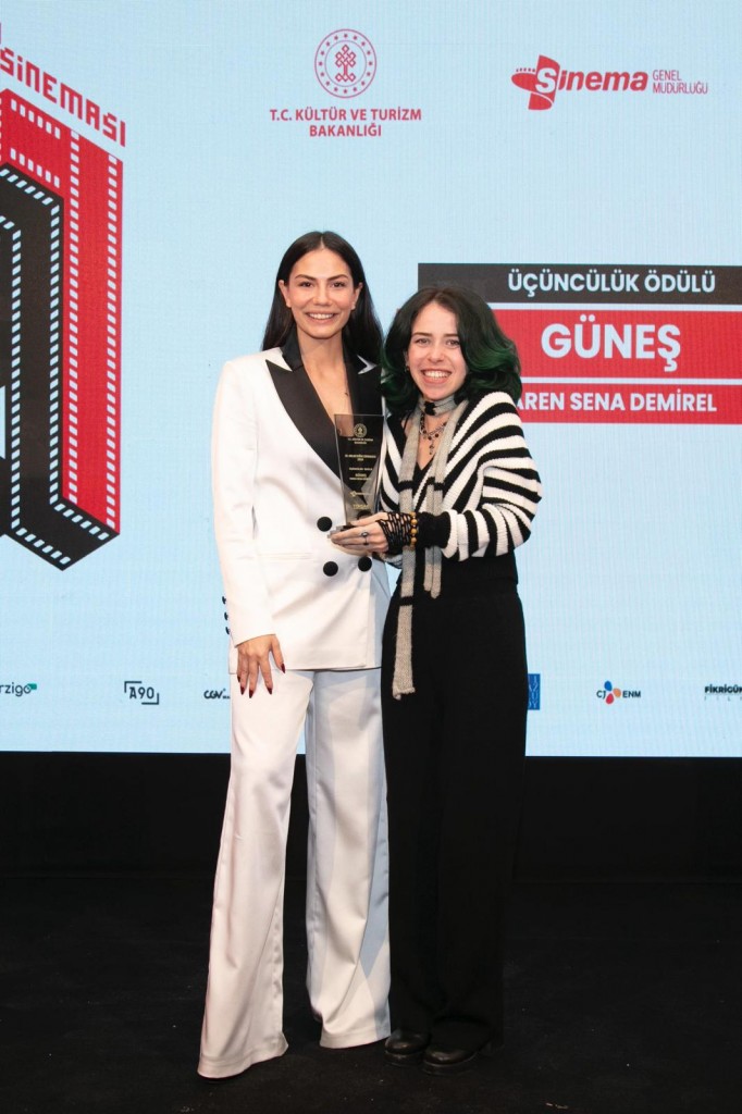 Yaren Sena Demirel, Doç. Hakan Erkılıç’ın Yapım-Yönetim II dersi kapsamında yönlendirmesiyle katıldığı yarışmada “Güneş” adlı senaryosu ile ilk 20’ye girerek yarı finale yükseldi. Ardından ilk 10’a seçilen senaryo, 25 bin TL yapım desteği almaya hak kazandı. Hayata geçirilen proje, jüri tarafından üçüncülük ödülüne layık görüldü. Demet Özdemir’in takdimiyle ödülünü alan Demirel, fakültemize büyük bir gurur yaşattı.