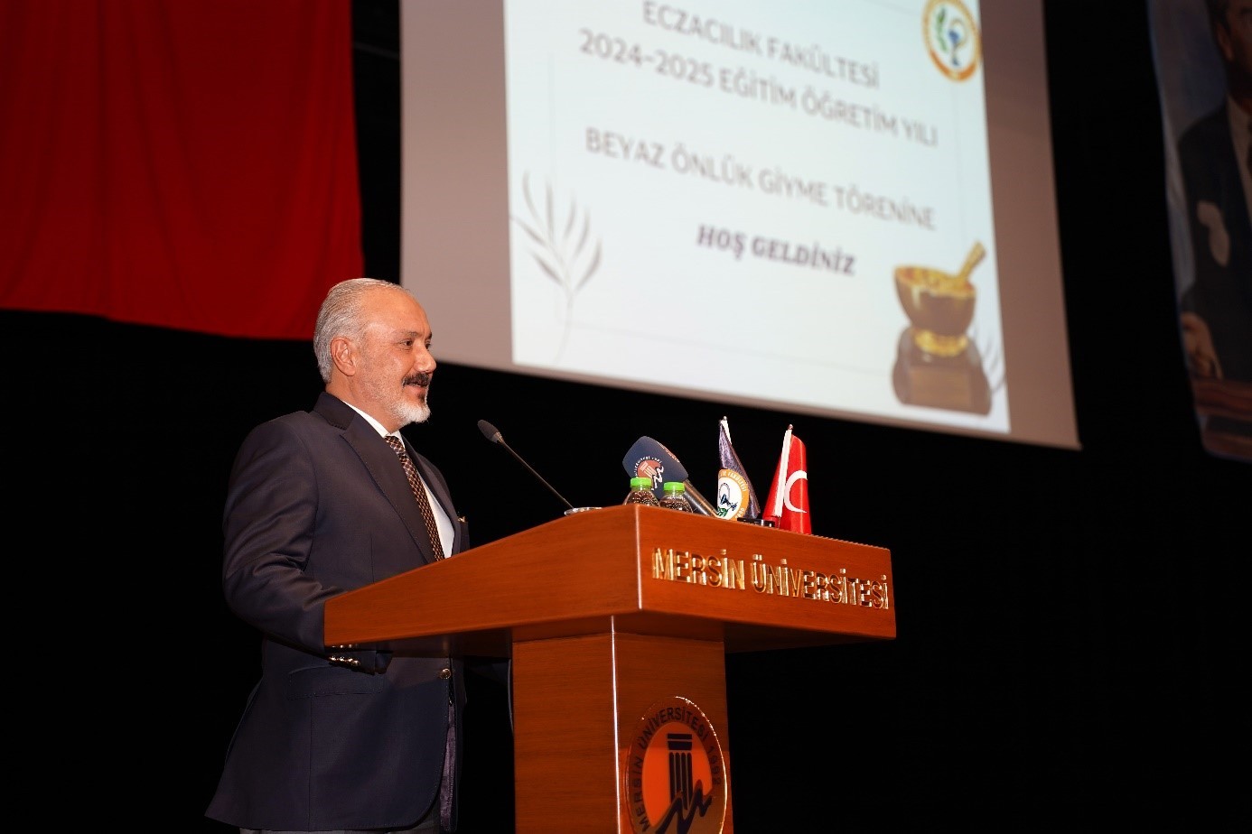 Öğrencilerimizin bugün mesleklerine ilk adımı attıklarını ve çok iyi bir fakülteye geldiklerini belirterek konuşmasına başlayan Rektör Yardımcımız Prof. Dr. Mehmet İsmail YAĞCI, "Eczacılık Fakültemiz akredite olmuş bir fakültedir. Bunun önemini buradan mezun olduğunuzda anlayacaksınız. Eczacılık Fakültemizin akademik kadrosu çok nitelikli. Sağlık sektörü toplumsal sorumluluğu çok yüksek olan bir sektör. Öyle olması gereken bir sektör. 1. sınıfa başlayan ve bugün beyaz önlük giyen öğrencilerimizden önlüklerini kirletmelerini istiyorum. Laboratuvar çalışmalarınızla kirletin. Üstünüze aminoasitler sıçrasın. İnsanlığa faydalı olun. Çünkü gerçekten tarihin en eski mesleklerinden birine adım atıyorsunuz. Amacı insanı daha uzun ve sağlıklı yaşatmak olan bir meslektir eczacılık. Sizler bunun bir parçası olacaksınız. Üniversitemizde sosyal etkinliklere de katılın. Bundan sonra Üniversitemizde öğrencilerimize sosyal transkript verilecek. Kendinizi buna da hazırlayın." dedi. Rektör Yardımcımız Prof. Dr. Mehmet İsmail YAĞCI, öğrencilerimizin velilerine ve Fakültemiz akademisyenlerine teşekkür ederek konuşmasını tamamladı.