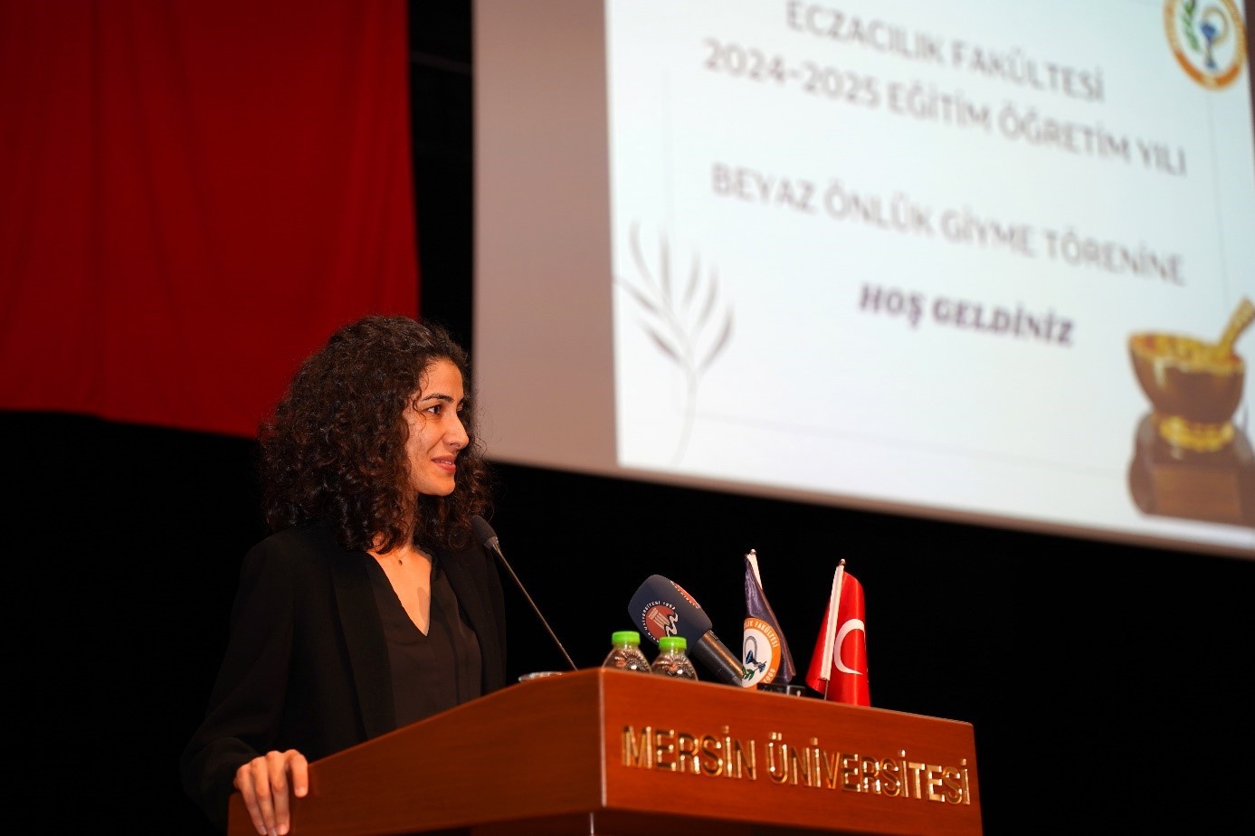 Sözlerine Üniversitemizi ve Fakültemizi tercih ederek aramıza katılan öğrencilerimizi tebrik ederek başlayan Fakültemiz Dekanı Prof. Dr. Necmiye CANACANKATAN, “Bu başarının her aşamasında evlatlarının yanında yer alan siz değerli aileleri de özellikle kutluyorum. Mersin Üniversitesi ailesine, aramıza hoş geldiniz. Sevgili öğrenciler biraz sonra beyaz önlüklerinizi giyerek aslında bu önlüğün temsil ettiği saflık, temizlik, dürüstlük, bilgelik ve vicdan sahibi olmak gibi değerleri üstlenerek mesleki eğitiminize ilk adımınızı atıyorsunuz. Eczacılık mesleğinin saygınlığını ve sorumluluğunu gelecekte de Mersin Üniversitesi Eczacılık Fakültesi mezunları olarak en iyi şekilde taşıyacağınızdan eminim." dedi.