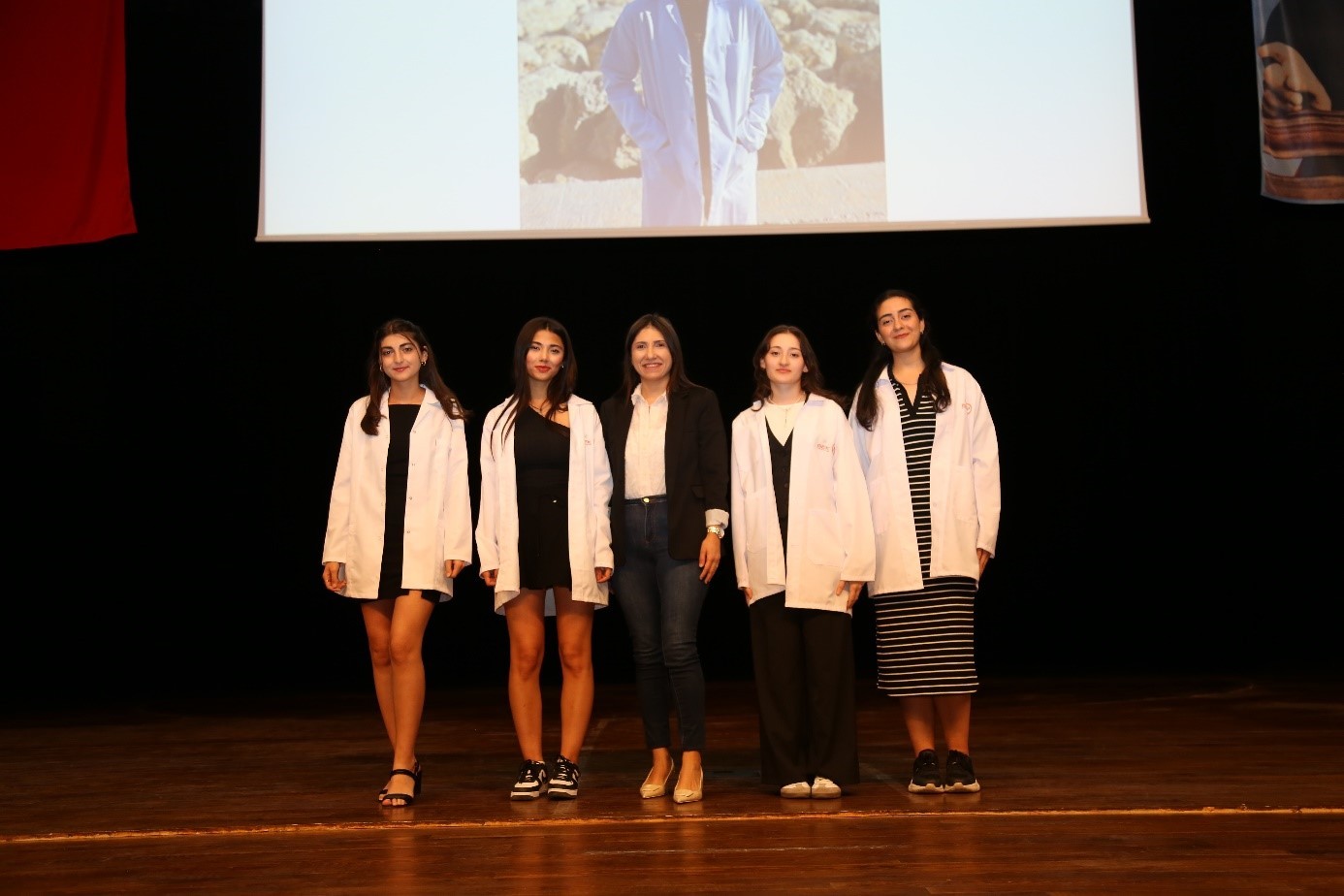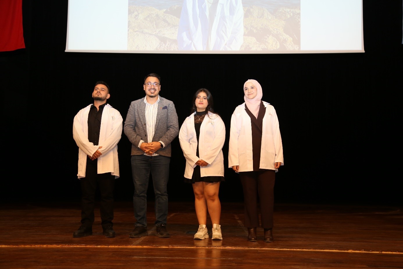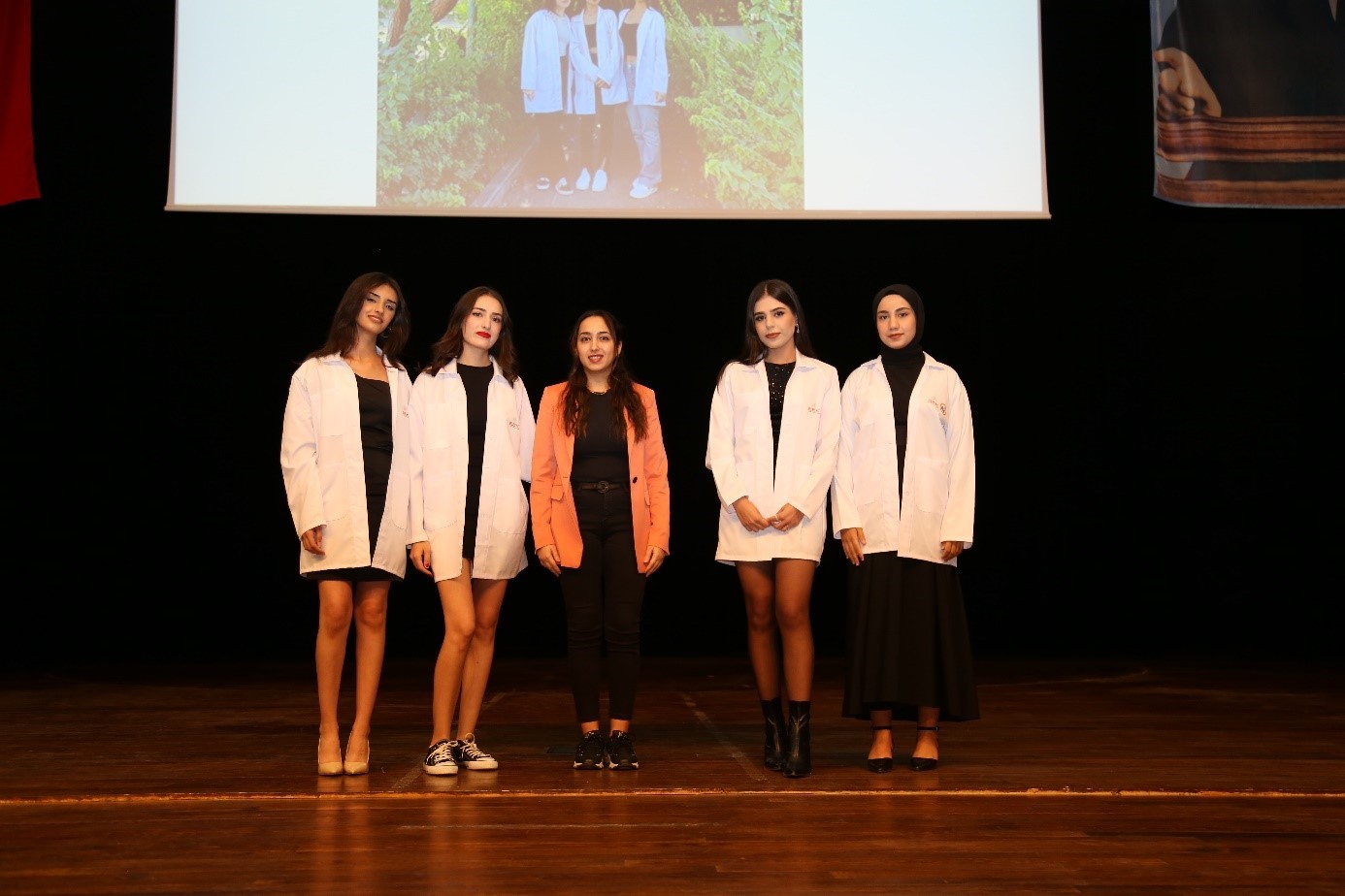 Rektör Yardımcımız Prof. Dr. Mehmet İsmail YAĞCI, Fakültemiz Dekanı Prof. Dr. Necmiye CANACANKATAN, TEB 25. Bölge Mersin Eczacı Odası Başkanı Uzm. Ecz. Aliye AKGÜL AYDIN, Güney Ecza Kooperatifi Yönetim Kurulu Başkanı Ecz. Tarkan BİR, Fakültemiz öğretim elemanları ve mezun eczacıları tarafından tarafından Fakültemize yeni başlayan 1. Sınıf öğrencilerimize beyaz önlükleri giydirildi.