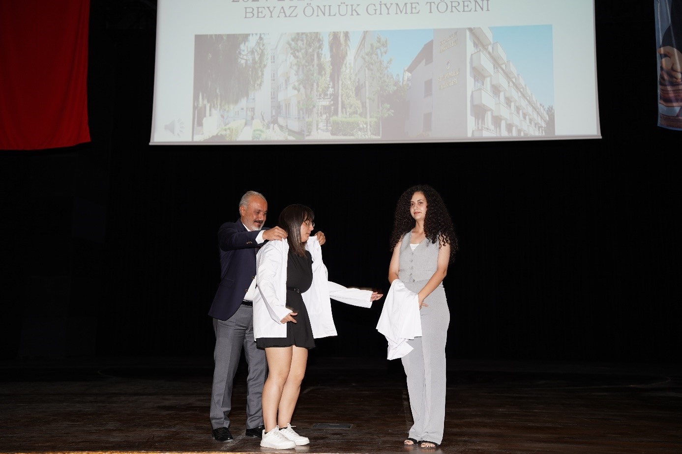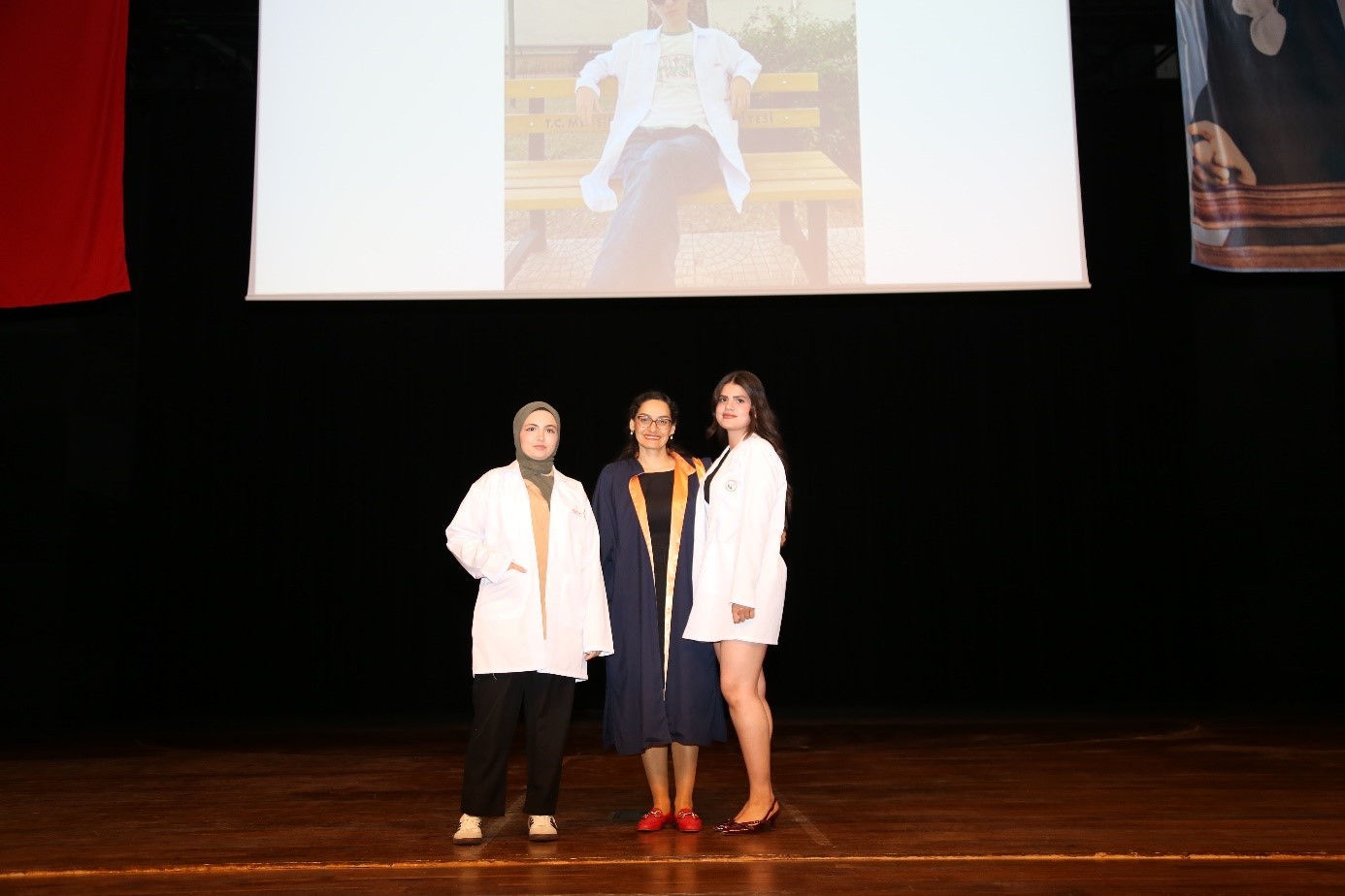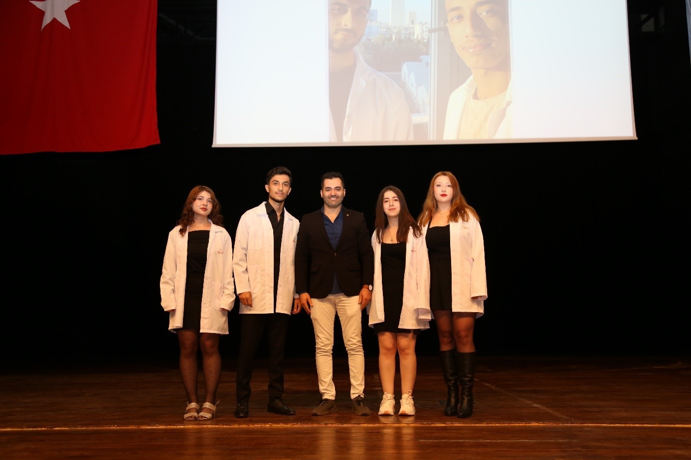Rektör Yardımcımız Prof. Dr. Mehmet İsmail YAĞCI, Fakültemiz Dekanı Prof. Dr. Necmiye CANACANKATAN, TEB 25. Bölge Mersin Eczacı Odası Başkanı Uzm. Ecz. Aliye AKGÜL AYDIN, Güney Ecza Kooperatifi Yönetim Kurulu Başkanı Ecz. Tarkan BİR, Fakültemiz öğretim elemanları ve mezun eczacıları tarafından tarafından Fakültemize yeni başlayan 1. Sınıf öğrencilerimize beyaz önlükleri giydirildi.