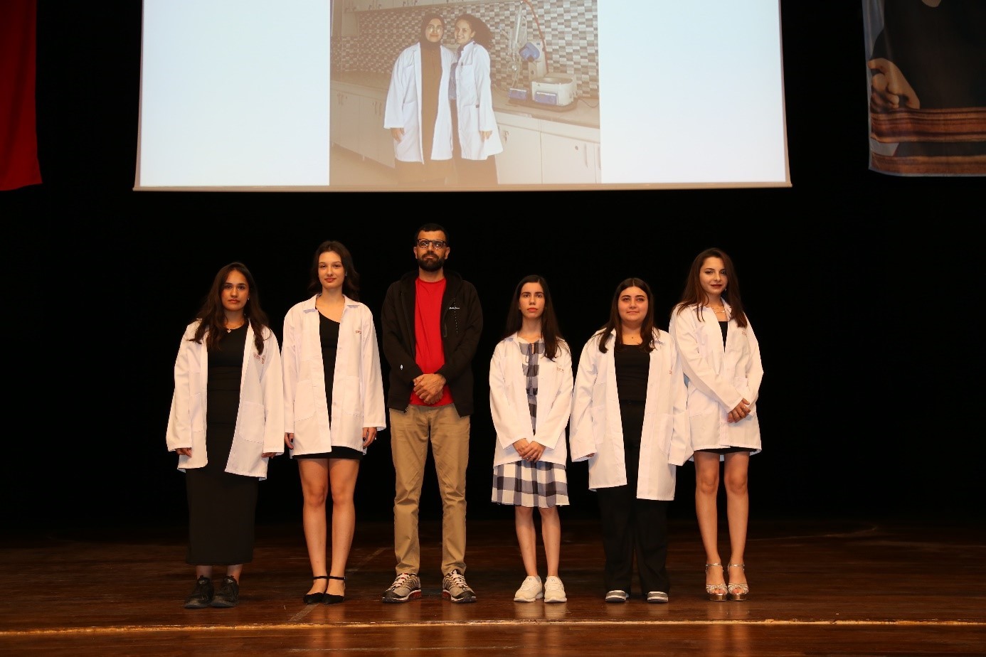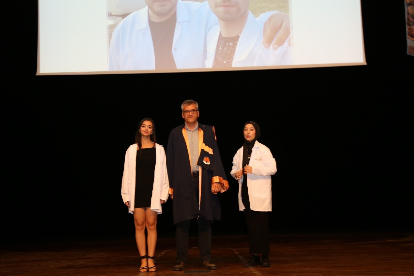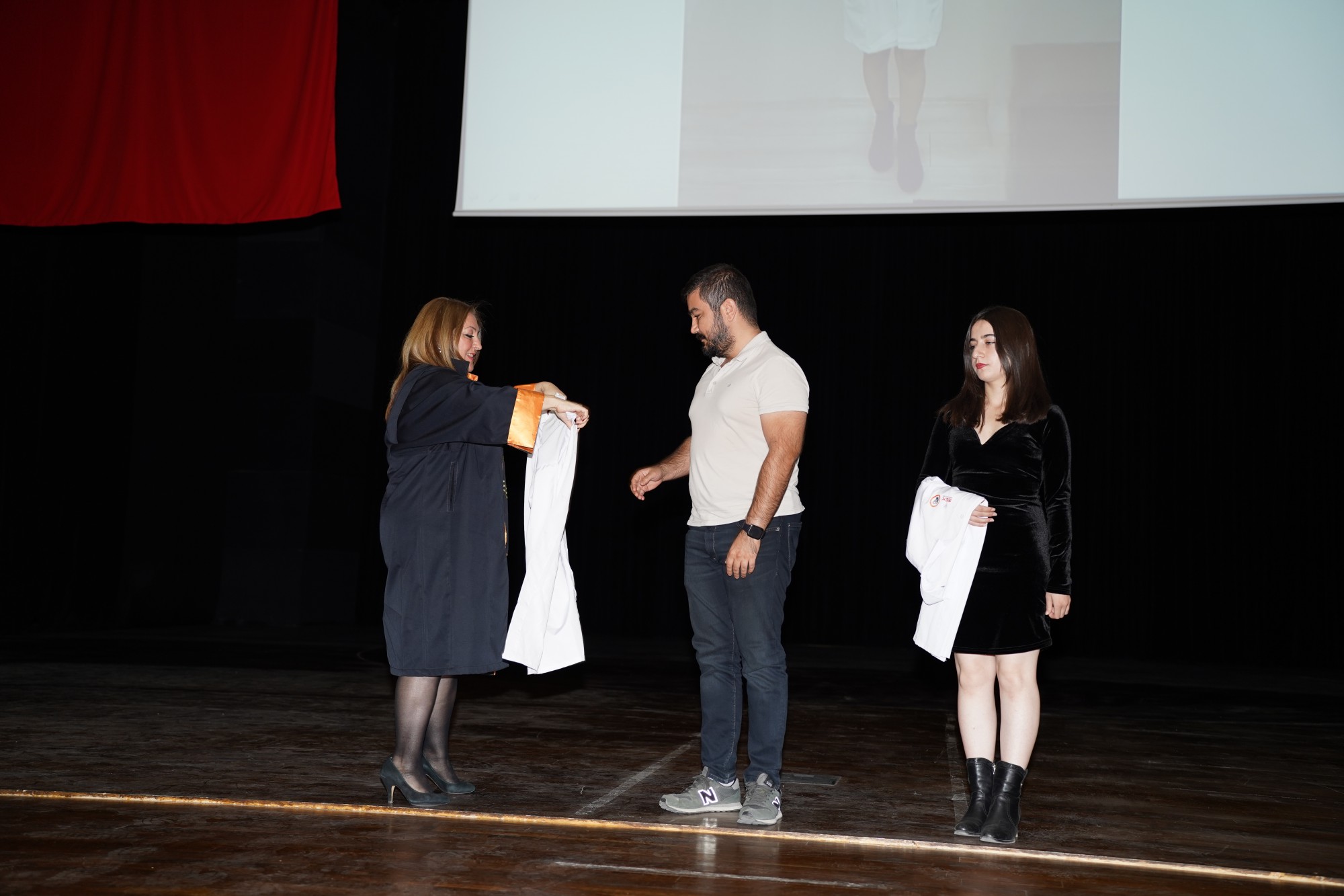 Öğrencilerimiz adına konuşan 5. sınıf öğrenci temsilcisi Şeyhmus ATIZ ise Üniversitemiz öğrencisi olarak beş yıldan neler yaşadığını anlatarak beyaz önlük giyecek genç meslektaşlarına bazı tavsiyelerde bulundu. Konuşmaların ardından beyaz önlük giyme törenine geçildi.