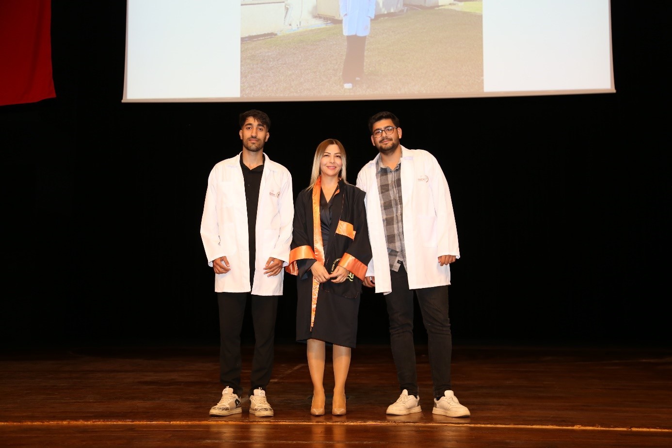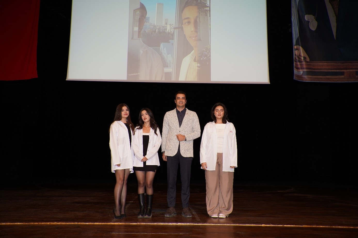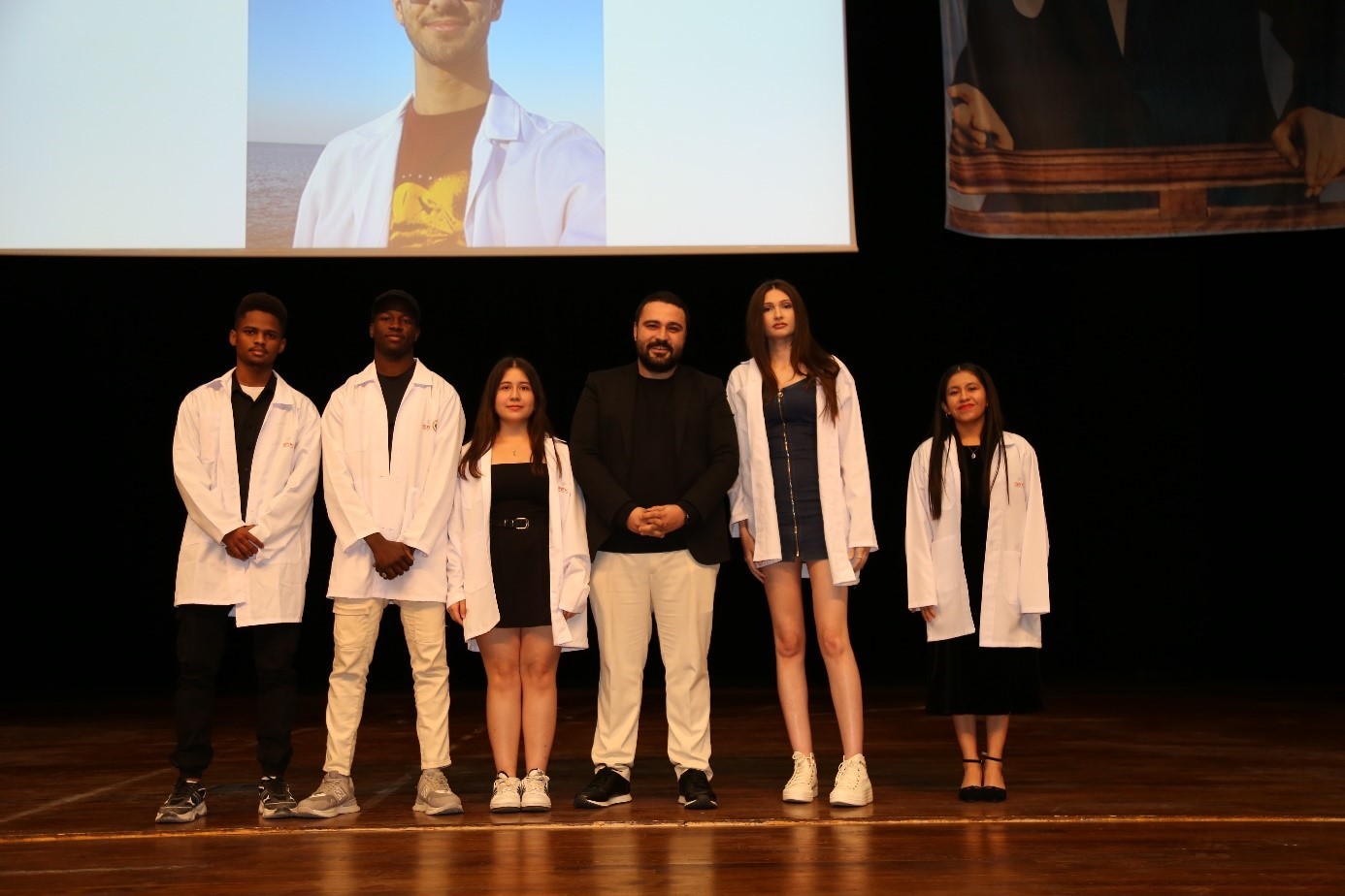 Öğrencilerimiz adına konuşan 5. sınıf öğrenci temsilcisi Şeyhmus ATIZ ise Üniversitemiz öğrencisi olarak beş yıldan neler yaşadığını anlatarak beyaz önlük giyecek genç meslektaşlarına bazı tavsiyelerde bulundu. Konuşmaların ardından beyaz önlük giyme törenine geçildi.