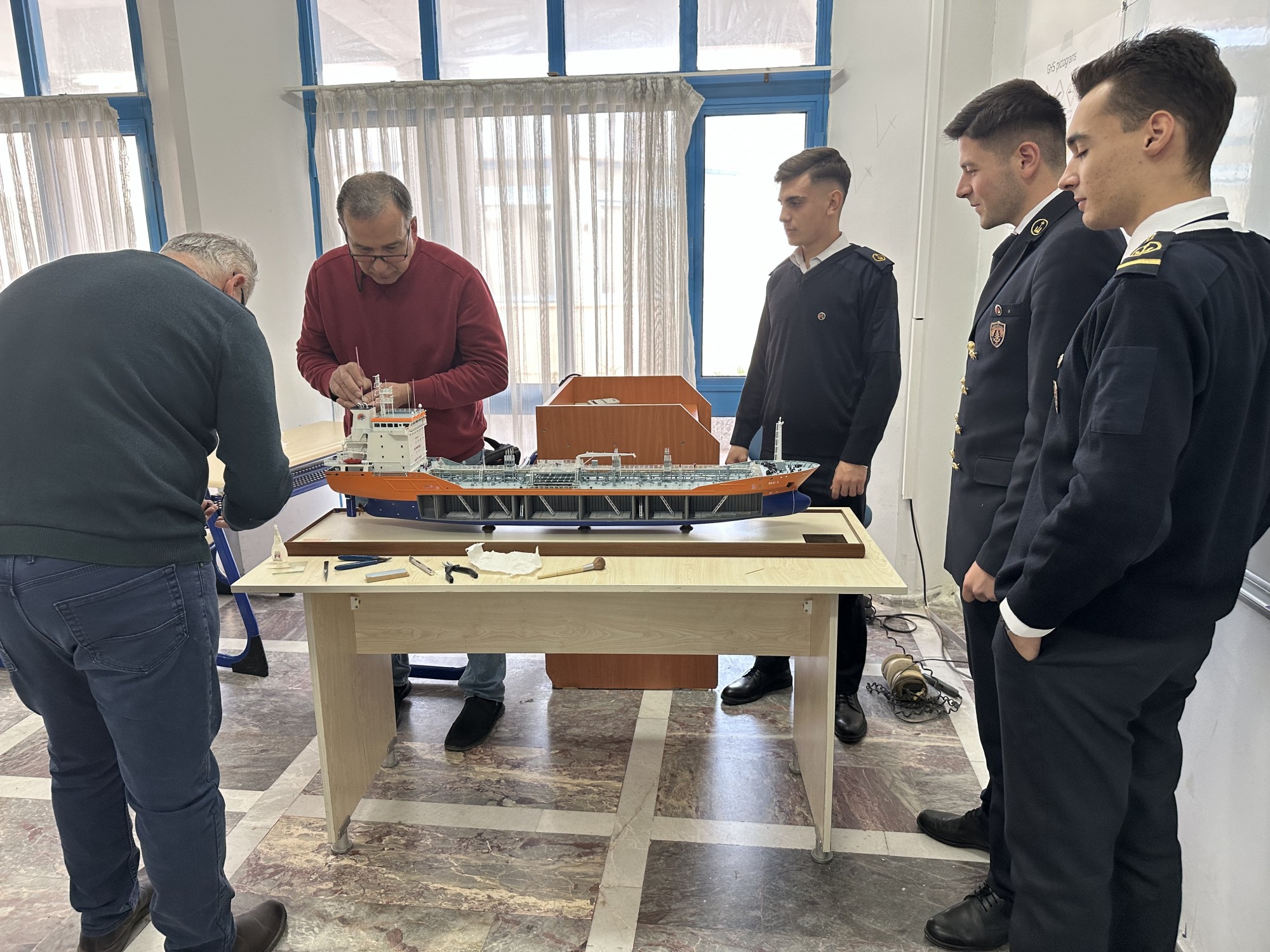 Denizcilik Meslek Yüksekokulumuzda eğitim materyalimiz olan gemi maketlerinin üreticisi GELİBOLU MODEL & MAKET firma sahibi Sayın Bülent SAĞDIÇ ve Sayın Murat SAĞDIÇ davetlimiz olarak okulumuza gelerek, 2010 yılında okulumuz için yaptıkları model gemi ve liman vinç sisteminin bakımını gerçekleştirmişler, öğrencilerimiz ile söyleşi etkinliğimize katılmışlardır. Kendilerine okulumuz ve Denizcilik Topluluğu yönetimi olarak saygılarımızı ve teşekkürlerimizi sunarız.
