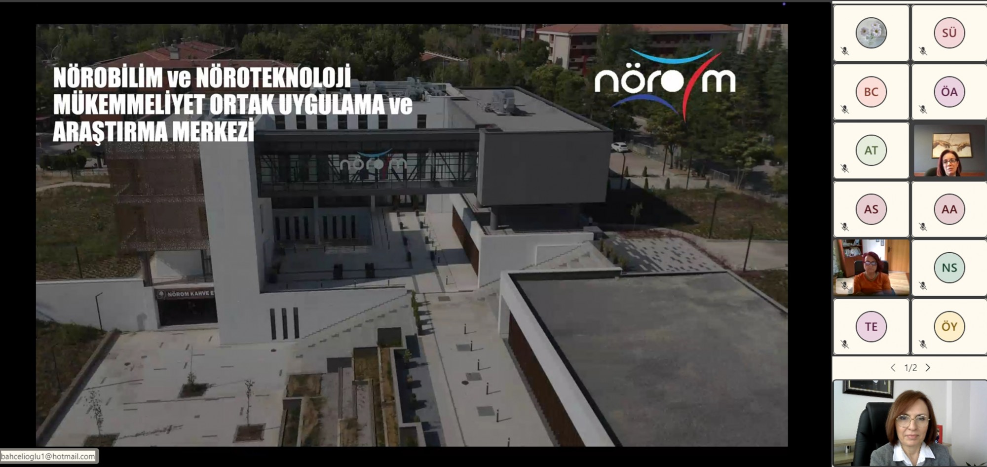 Profesör Bahçelioğlu, NÖROM’un tarihçesinden bahsettikten sonra, uluslararası düzeyde modern binasına kavuşmasının ardından faaliyetlerine başladığını belirtti. Merkezin laboratuvar alt yapısını ve ne tür çalışmalar yapılabildiğini çok detaylı bir şekilde dinleyicilere anlatan Profesör Bahçelioğlu,  ayrıca bizlerin de yürütücü olduğumuz projelerimizle merkezden yararlanabileceğini belirterek, bu amaçla geliştirdikleri Nörom Yönetim Sistemini tanıttı.
