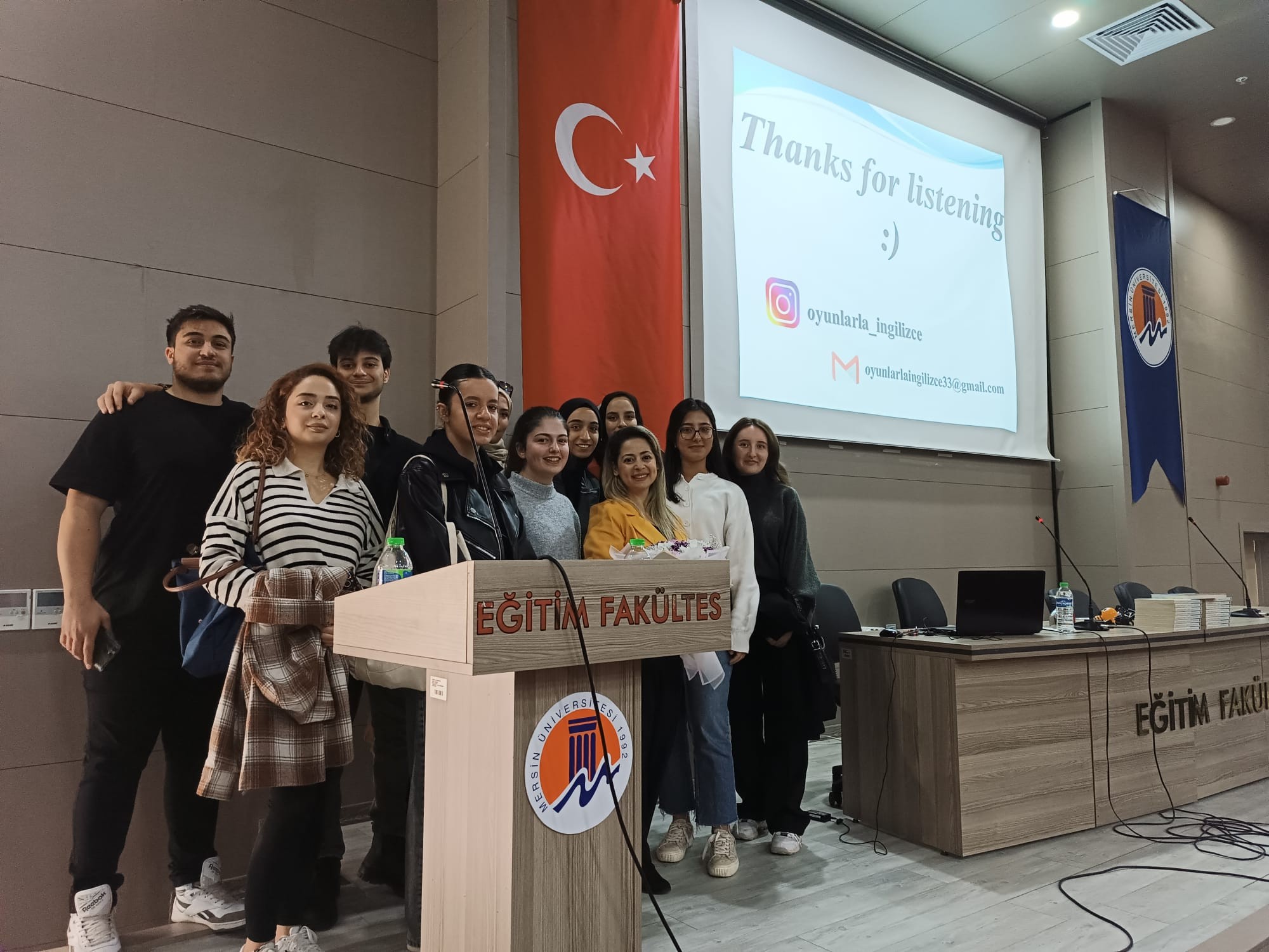 İngilizce Öğretmenliği bölümü tarafından düzenlenen Mersin ELT seminerler serisinin ilk toplantısı gerçekleşti. İngilizce öğretmeni ve yazar Nurperi Cömert İğdigül, 'Oyunlarla İngilizce' (English with Games) başlıklı seminerde çocuklara İngilizce öğretirken oyunların kullanımında teorik ve pratik uygulamalara yönelik bilgiler verdi.