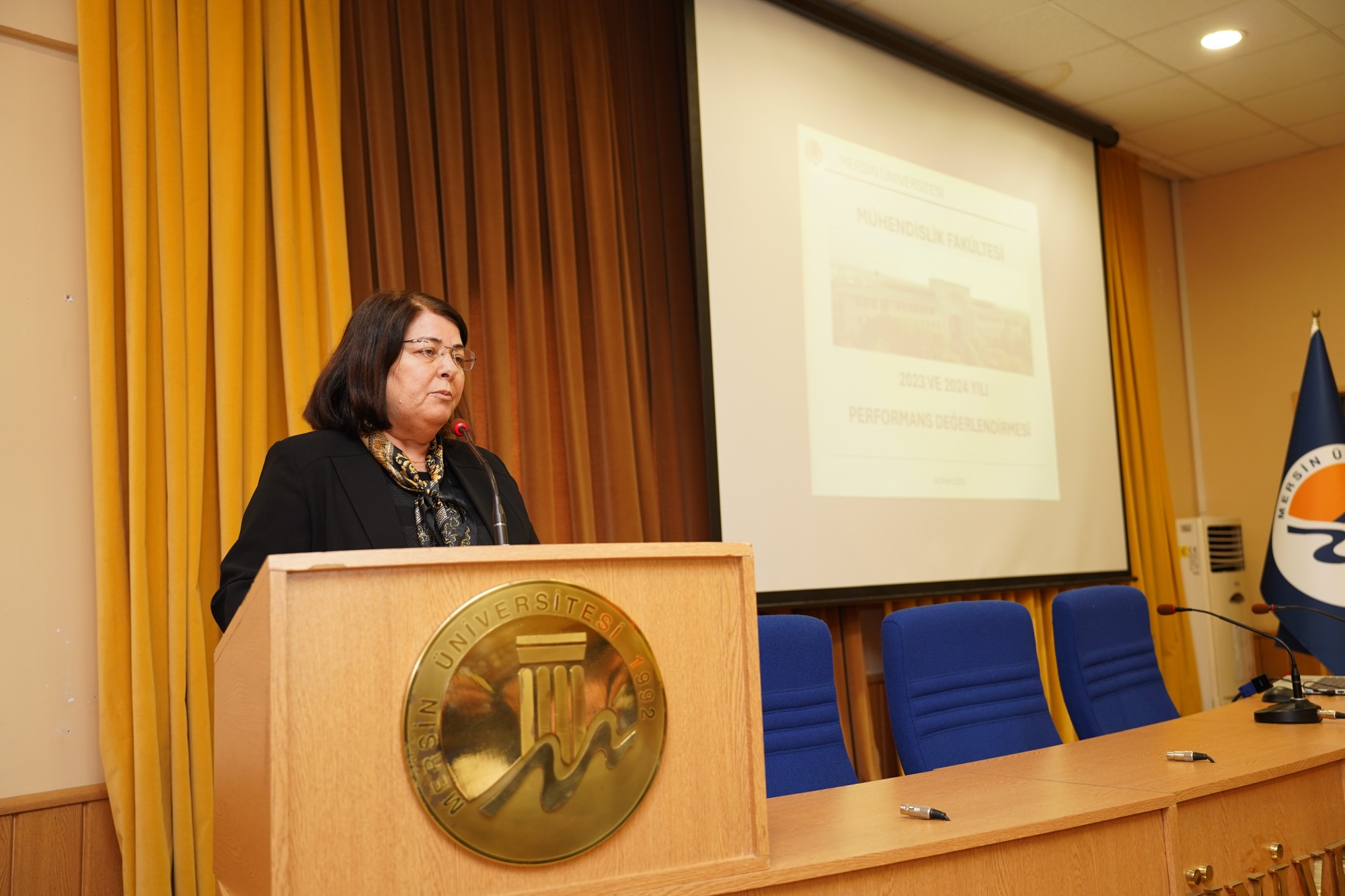 Toplantı kapsamında, Mühendislik Fakültesi Dekanı Prof. Dr. Ayla ÖZER tarafından fakültenin 2023 ve 2024 yıllarına ait bilimsel, akademik ve toplumsal faaliyetlerinin karşılaştırmalı analizini içeren sunum gerçekleştirildi. Sunumda fakültemizin akademik performansına ilişkin önemli veriler paylaşıldı, gerçekleştirilen çalışmalar ve geleceğe yönelik hedefler üzerinde duruldu.