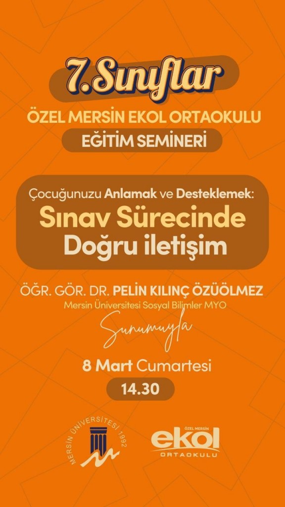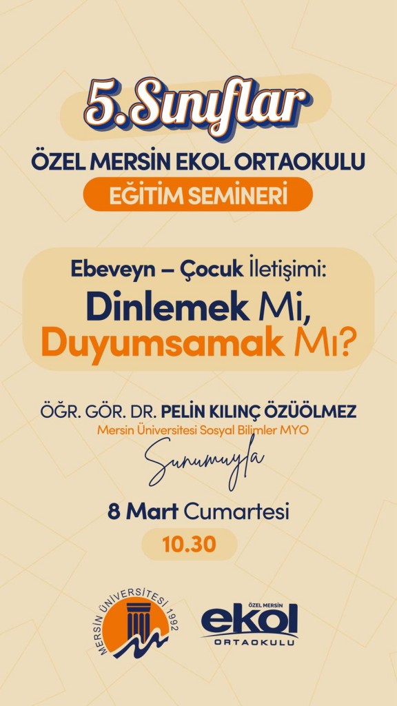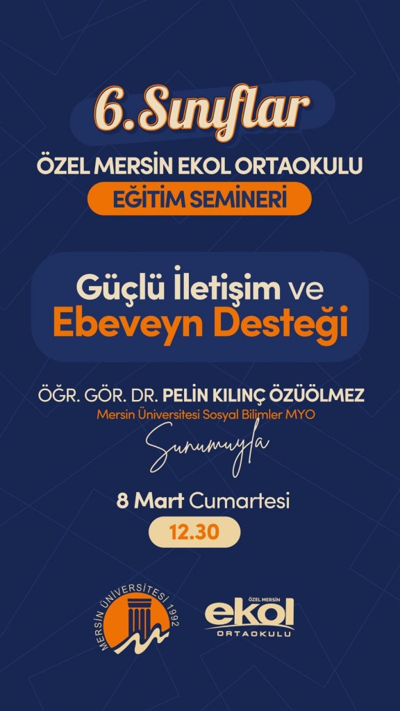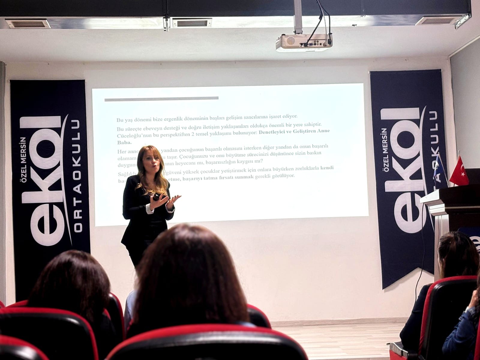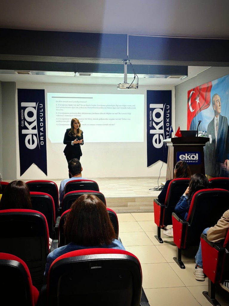 Özel Mersin Ekol Ortaokulu'nda, ebeveynlerin çocuklarıyla daha sağlıklı iletişim kurabilmesi için bir dizi seminer düzenlendi. Seminerlerin konuşmacısı olarak, Sosyal Bilimler Meslek Yüksekokulu öğretim elemanı Öğr. Gör. Dr. Pelin Kılınç Özüölmez yer aldı.