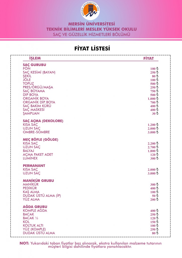 Kampüs Kadın Kuaför Fiyat Listesi