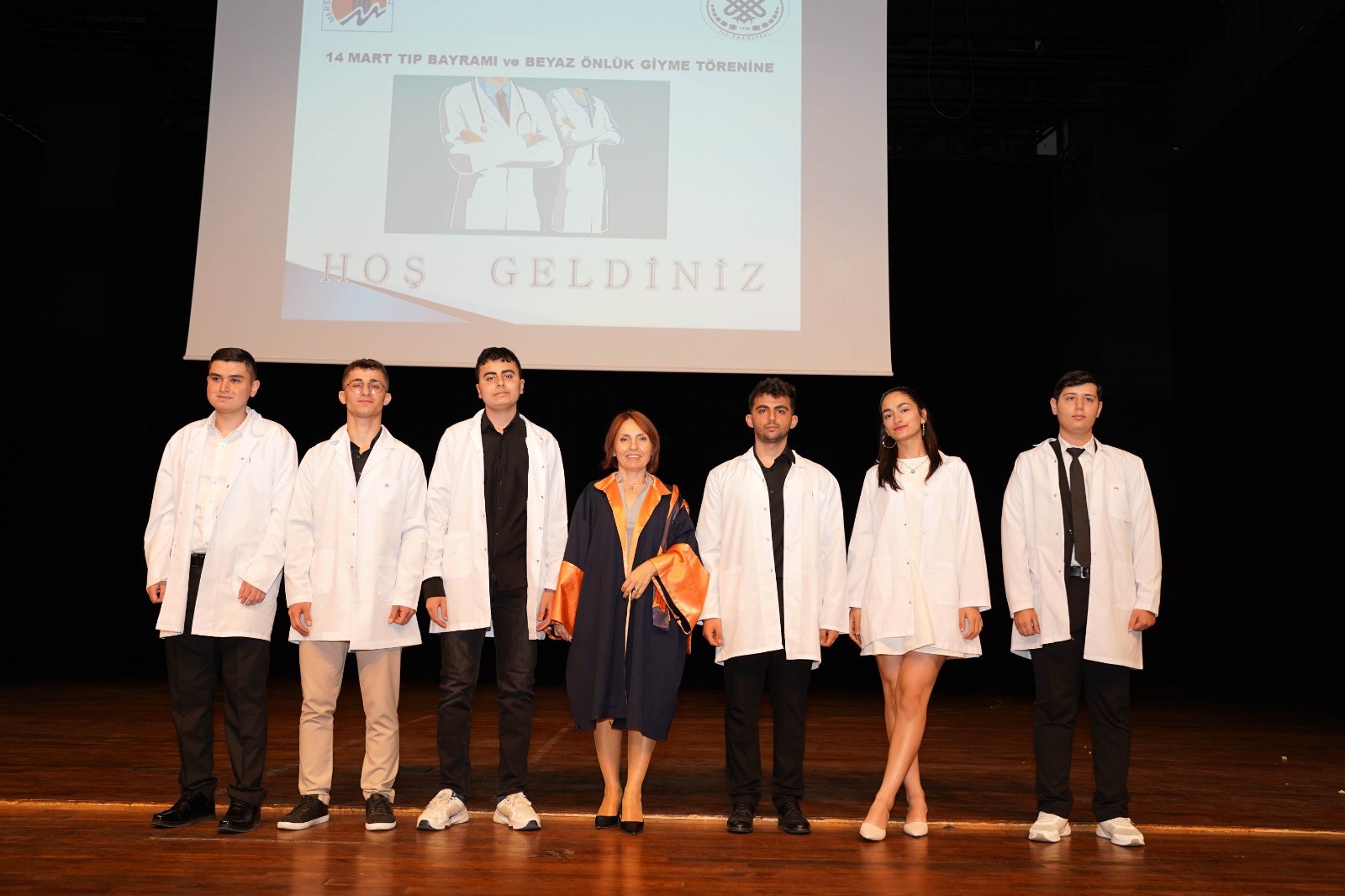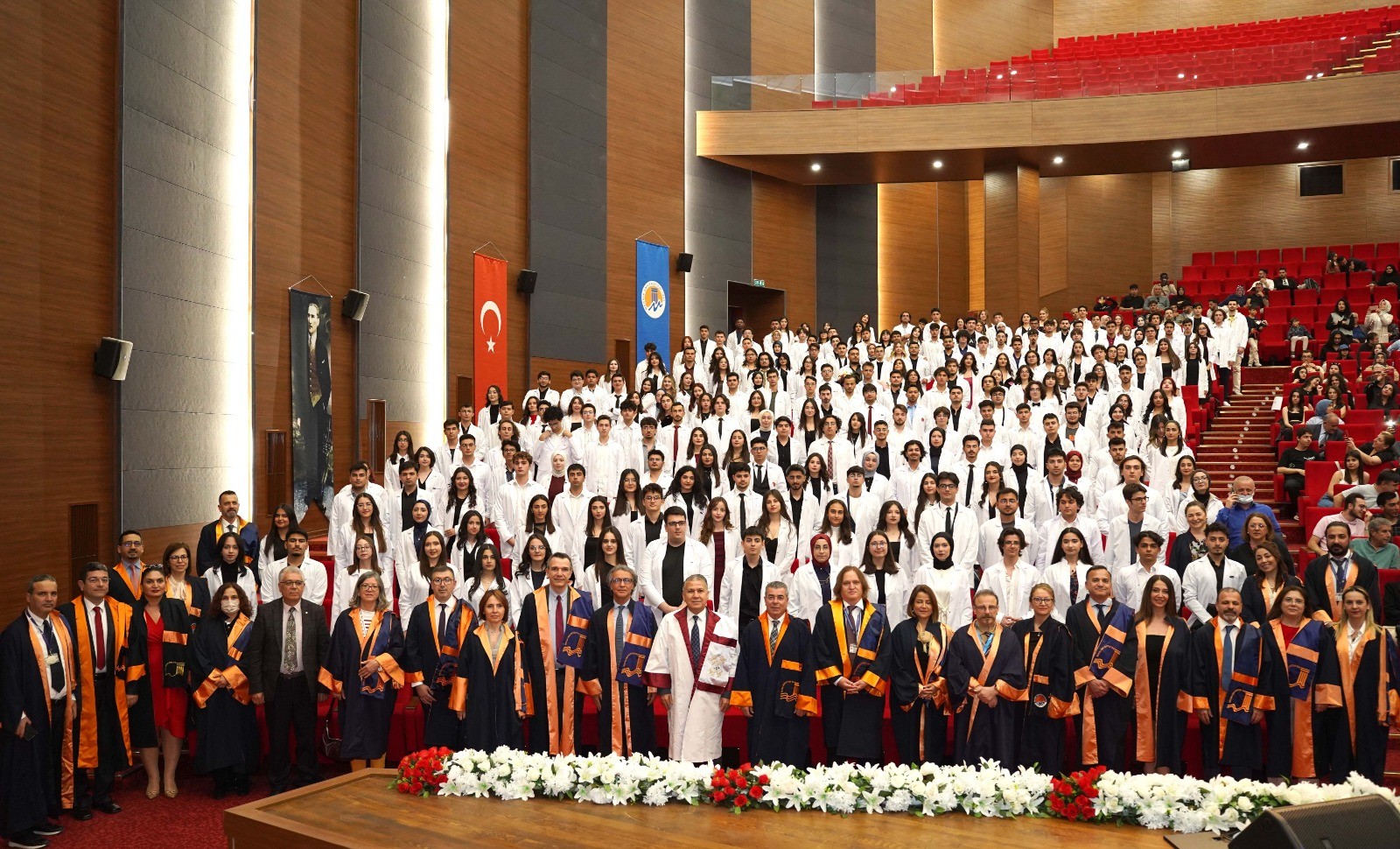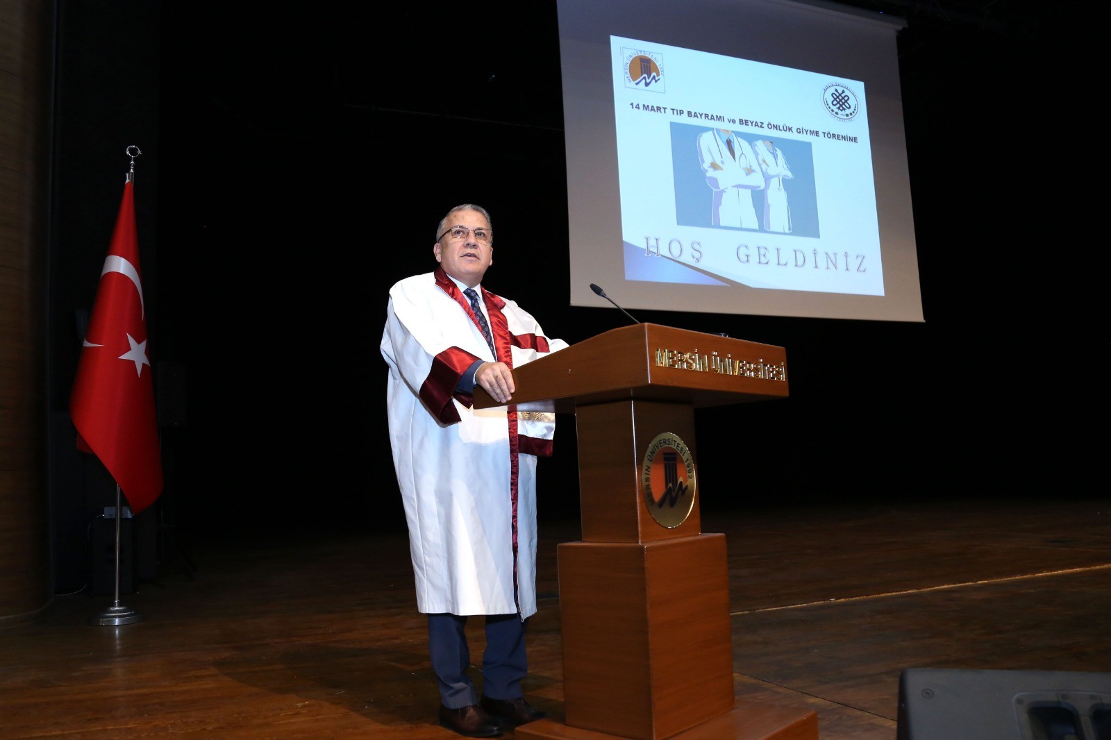 14 Mart 2025 Cuma günü Üniversitemiz Akdeniz Kültür Merkezi’nde düzenlenen törene Rektörümüz Prof. Dr. Erol Yaşar, Rektör Yardımcımız Prof. Dr. Ahmet Hakan Öztürk, Tıp Fakültesi Dekanımız Prof. Dr. Ali Kaya, Mersin Tabip Odası Başkanı Uzm. Dr. İzzet Çalış, hekimlerimiz, öğretim elemanlarımız ve öğrencilerimizin yakınları katıldı.