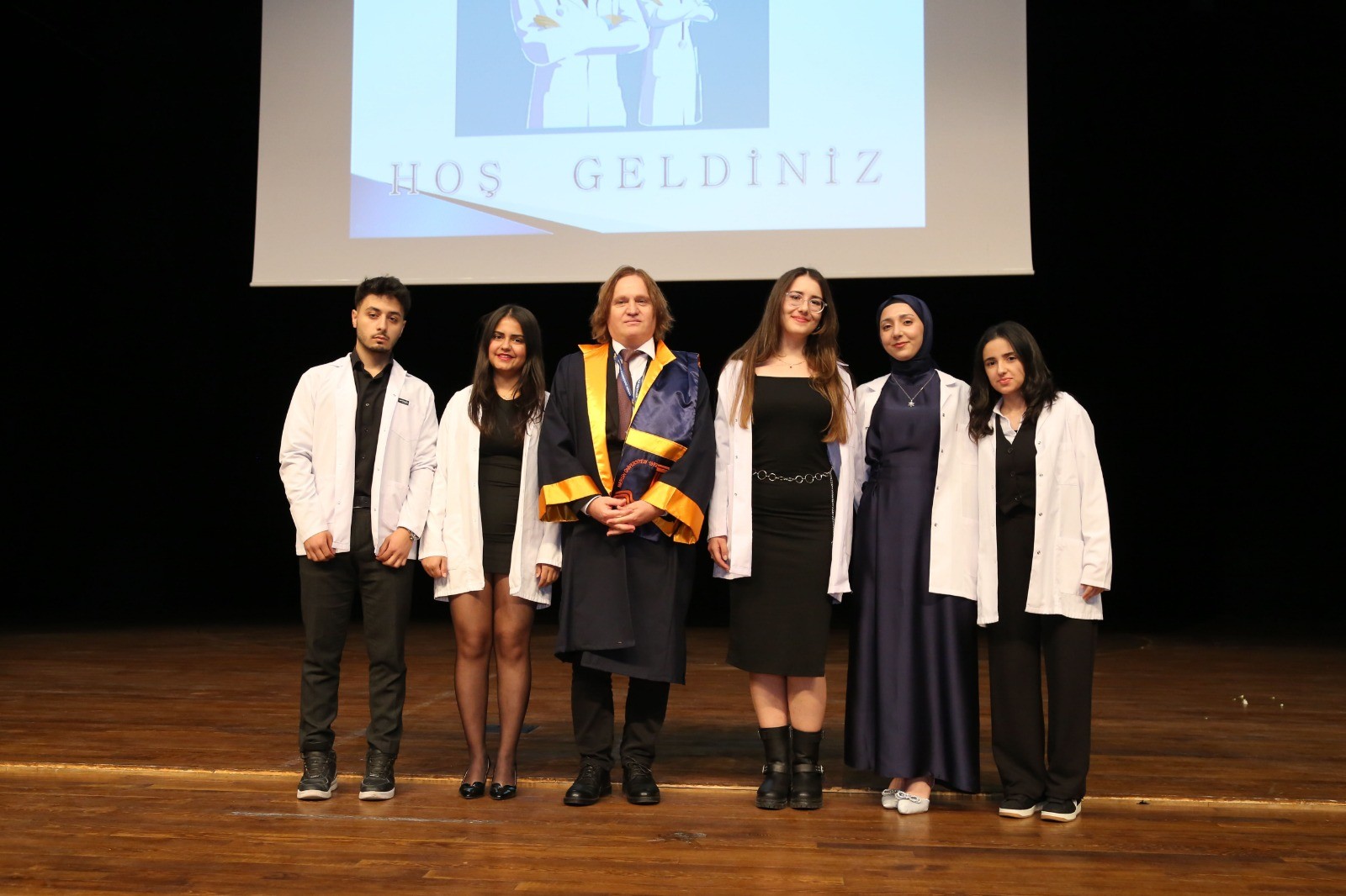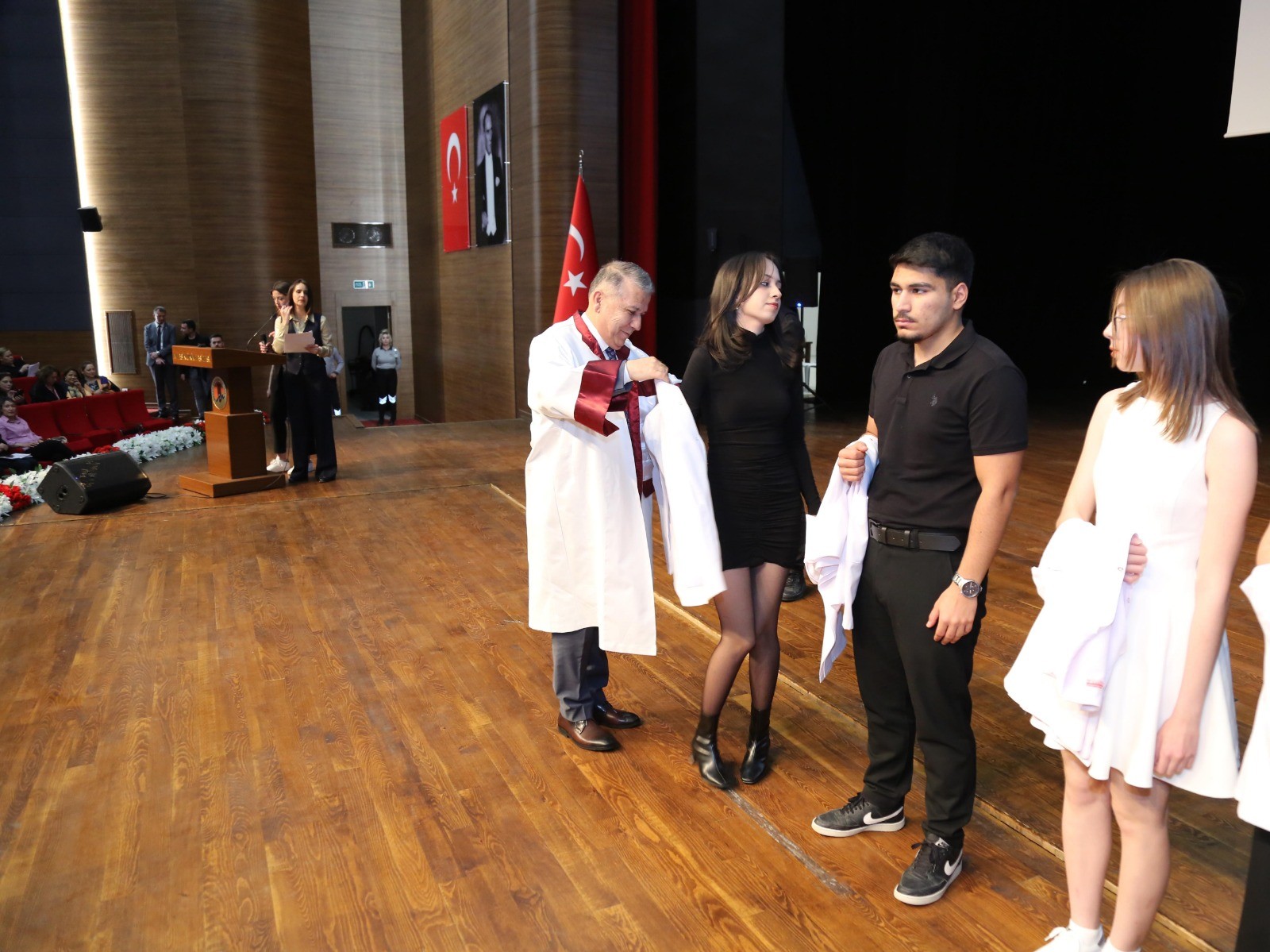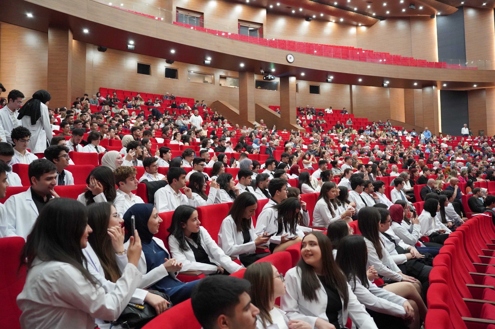 14 Mart 2025 Cuma günü Üniversitemiz Akdeniz Kültür Merkezi’nde düzenlenen törene Rektörümüz Prof. Dr. Erol Yaşar, Rektör Yardımcımız Prof. Dr. Ahmet Hakan Öztürk, Tıp Fakültesi Dekanımız Prof. Dr. Ali Kaya, Mersin Tabip Odası Başkanı Uzm. Dr. İzzet Çalış, hekimlerimiz, öğretim elemanlarımız ve öğrencilerimizin yakınları katıldı.
