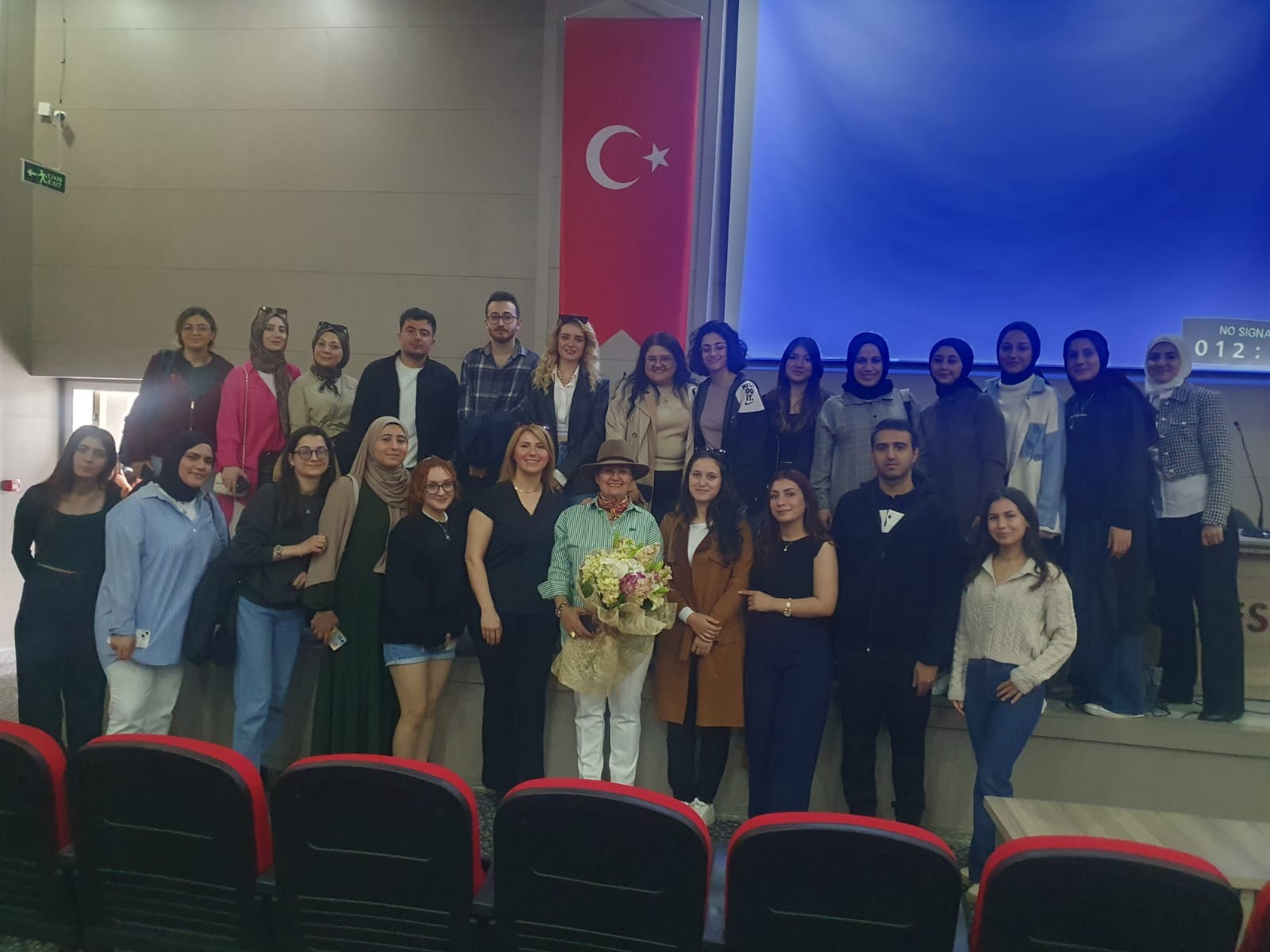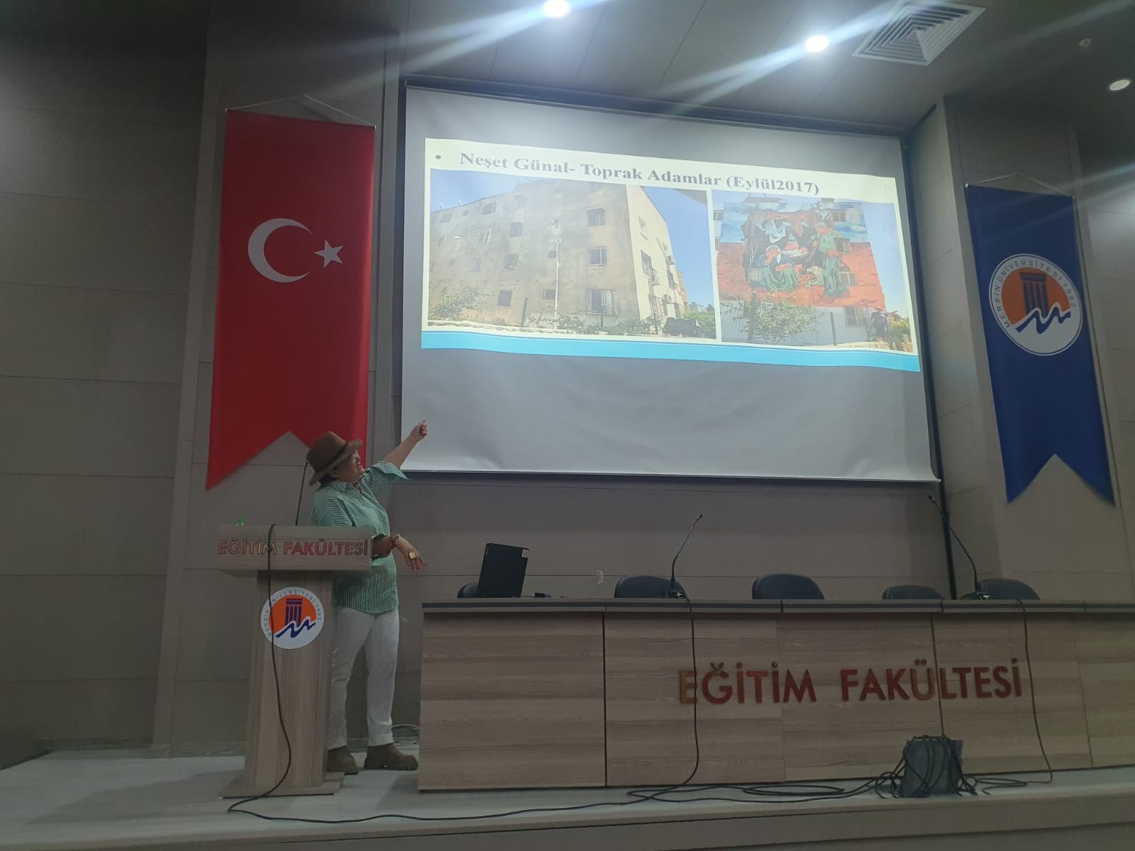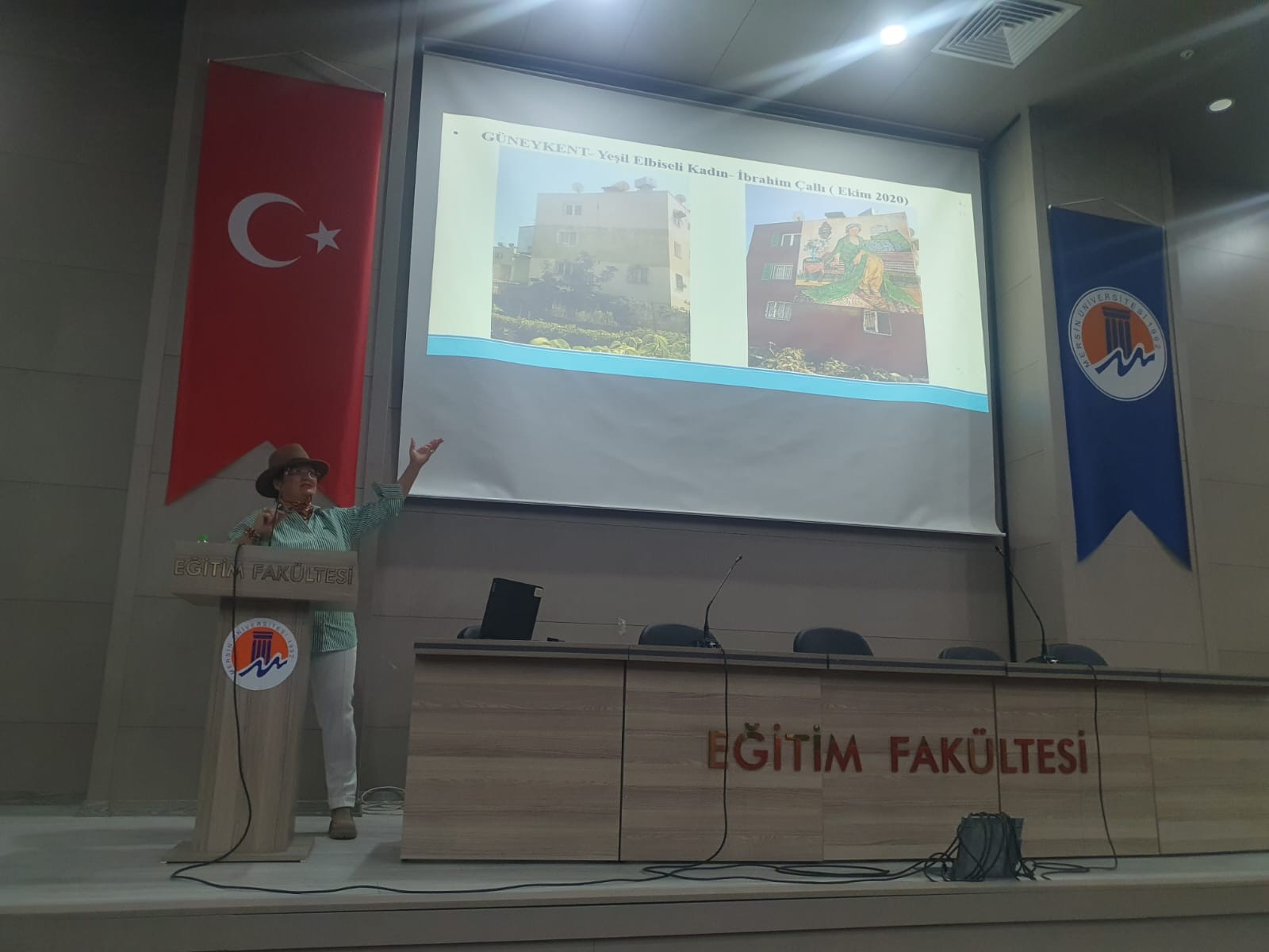 Üniversitemiz Eğitim Fakültesi Okul Öncesi Eğitimi Anabilim Dalı öğretim üyesi Doç. Dr. Simge Yılmaz Uysal’ın davetiyle duvar ressamı Nazife Bilgin Hazar, öğrencilerimiz ve fakültemiz çalışanlarıyla bir araya geldi. Fakültemiz Prof. Dr. Ahmet Çamsarı Konferans Salonu’nda gerçekleştirilen “Sanatıyla Mersin’i Güzelleştiren Ressam” başlıklı söyleşiye yoğun ilgi gösterildi.