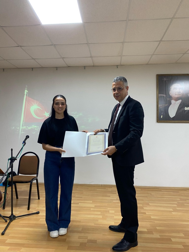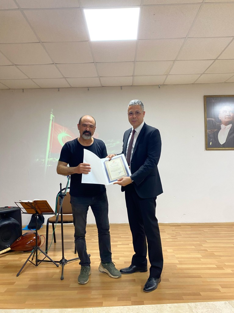 Etkinlik sonunda türkülerle bugüne katkı sunan sanatçımız Cihangir ALYÜREK’e sonrasında ise şiirleriyle bu anlamlı etkinliğe katkı sunan öğrencilerimize ve Evşen KOÇAK hocamıza teşekkür belgesi takdim edildi.