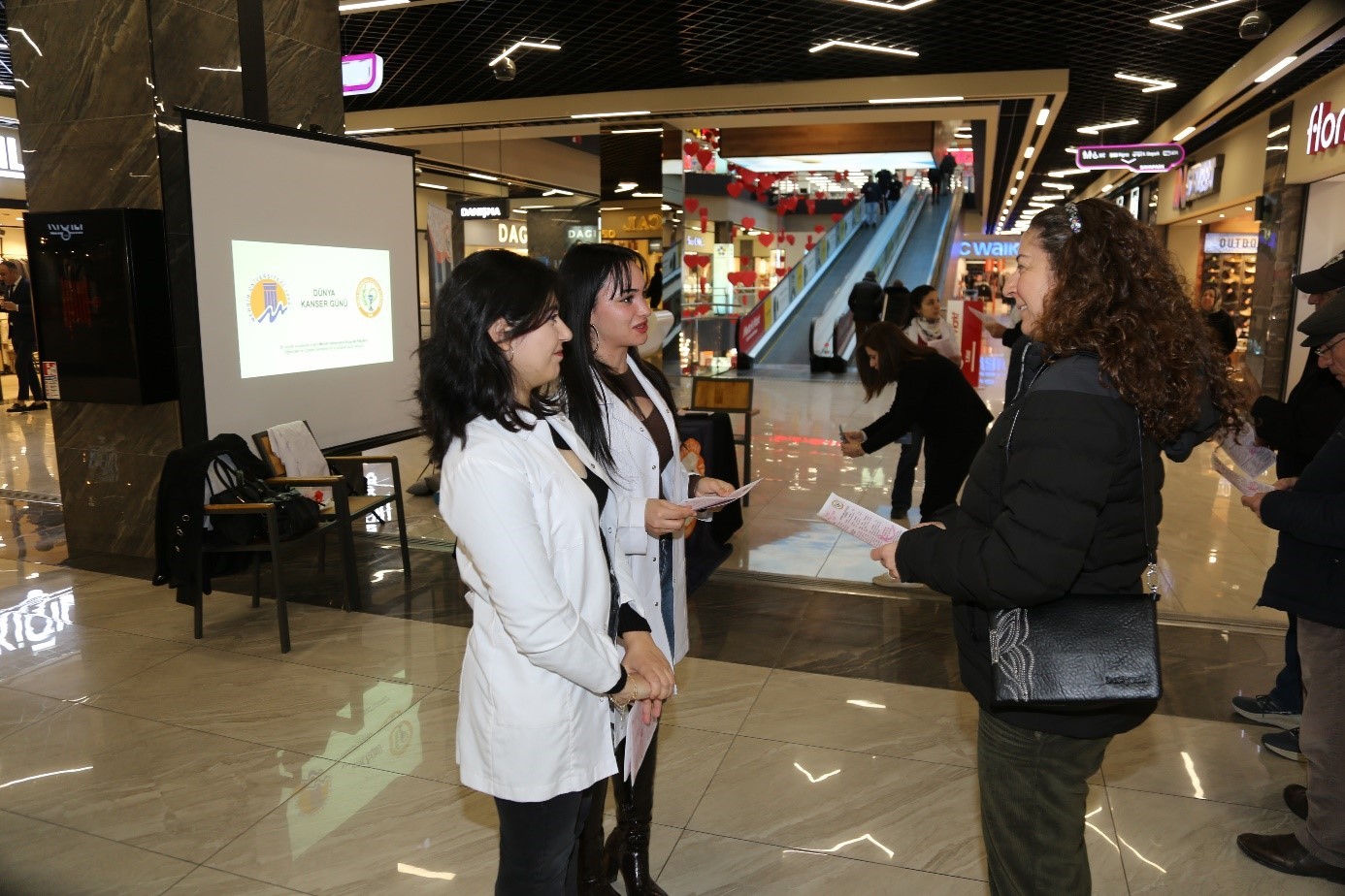 Fakültemiz Sosyal Sorumluluk ve Projeler Komisyonu tarafından 11 Şubat 2025 tarihinde “4 Şubat Dünya Kanser Günü” farkındalık etkinliği gerçekleştirildi. Etkinliğe, Fakültemiz Dekanı Prof. Dr. Necmiye CANACANKATAN, Dekan Yrd. ları Prof. Dr. Seyhan ŞAHAN FIRAT, Dr. Öğr. Üyesi Ş. Efsun ANTMEN, Fakültemiz öğretim elemanları, Fakülte Sekreterimiz Volkan DARÇIN ve öğrencileri katıldı. Etkinlik kapsamında, Fakültemiz Sosyal Sorumluluk ve Projeler Komisyonu ve öğrencileri Sayapark Alışveriş Merkezinde standımızı ziyaret eden bireyleri kanser türleri, belirtileri, risk faktörleri, korunma yolları ve tedavisi hakkında bilgilendirerek broşür dağıttı. Gerçekleştirilen bu etkinlikte “4 Şubat Dünya Kanser Günü” kapsamında kanser hastalığa dikkat çekilmiş ve farkındalık sağlanmış oldu.