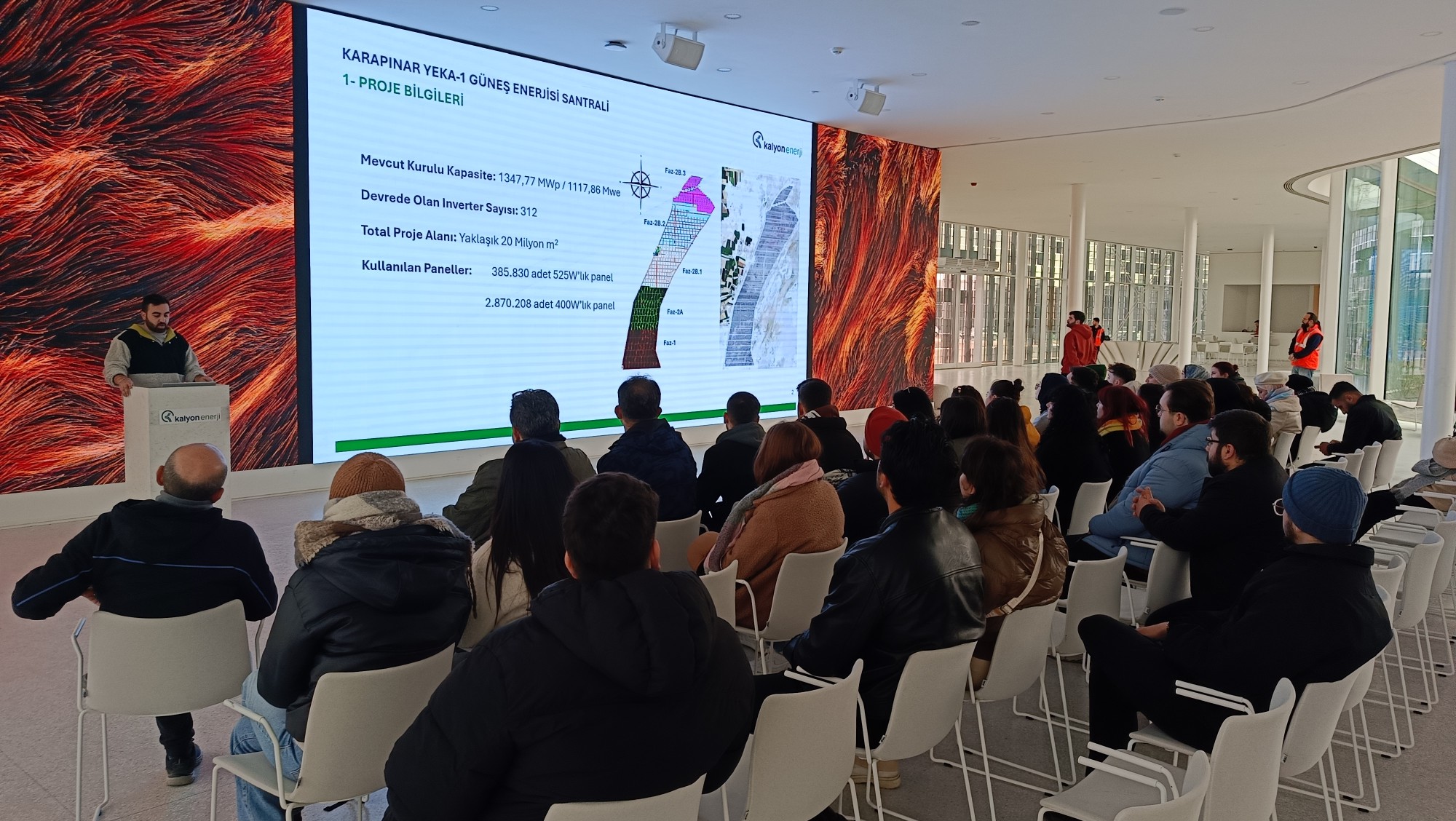 Mimarlık Bölümü 3. ve 4. sınıf öğrencilerimiz, Architectural Design V dersi kapsamında dersin öğretim elemanları rehberliğinde Konya Karapınar ilçesinde bulunan Kalyon Enerji GES tesisi alanı ve ödüllü hizmet binasına ilişkin teknik-inceleme gezisi yapmışlardır. Katılımcılar, tesis uzmanları anlatımı eşliğinde tesis genelinde yenilebilir enerji üretiminde kullanılan teknolojik uygulamaların yanı sıra yerleşke ve hizmet binası hakkında bilgiler edinmişlerdir.