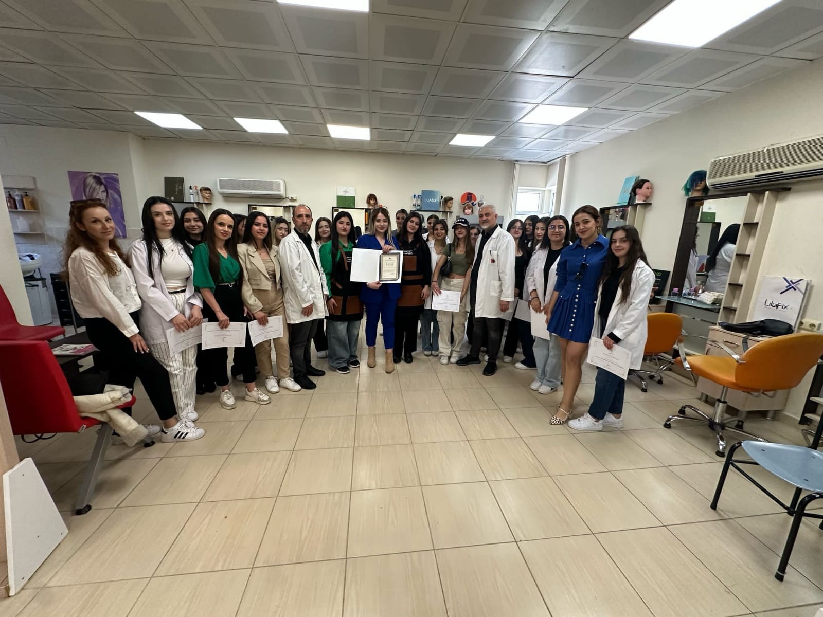 Yeni teknoloji UV Işını ile Keratin Bakımı Uygulama İşlemi Mezun Öğrencimiz Uzman Saç Tasarımcı Damla KOL tarafından Kuaför Uygulama Salonumuzda Öğrencilerimize eğitim semineri verildi. Yeni teknoloji UV Işını ile Keratin Bakımı Uygulama İşlemi Mezun Öğrencimiz Uzman Saç Tasarımcı Damla KOL tarafından Kuaför Uygulama Salonumuzda Öğrencilerimize eğitim semineri verildi. Eğitim sonunda öğrencilerimize Damla KOL tarafından sertifikaları verildi.