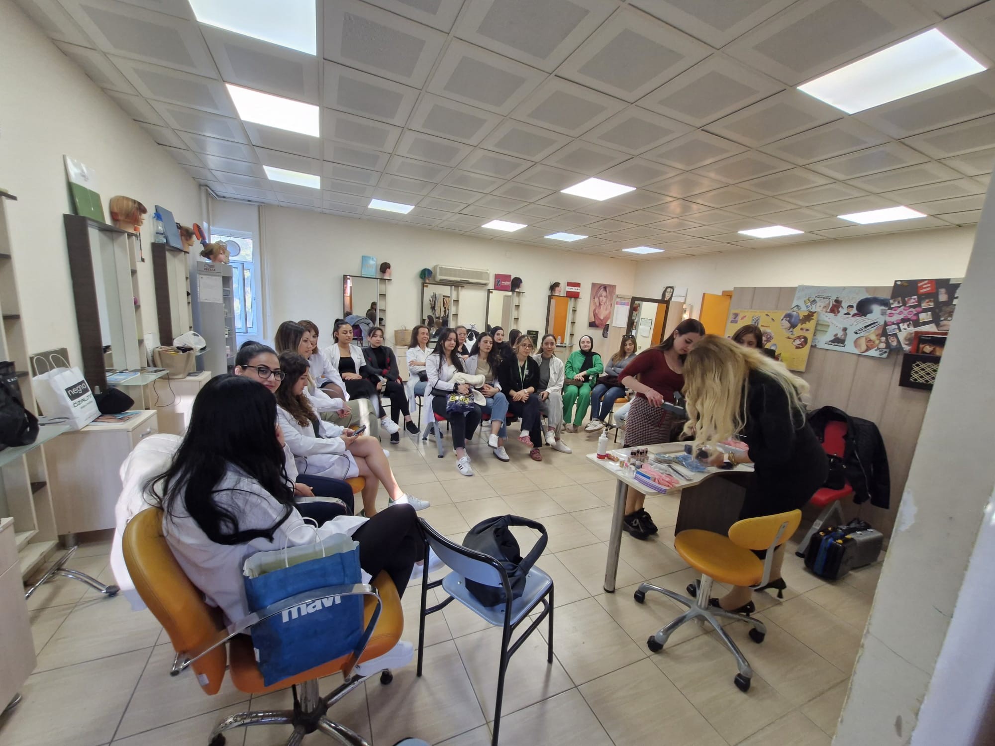Yeni Nesil Protez Tırnak Tasarım Çalışması Mezun öğrencilerimizden Hülya ŞENEL tarafından kuaförlük uygulama salonunda öğrencilerimize uygulamalı eğitim verildi.