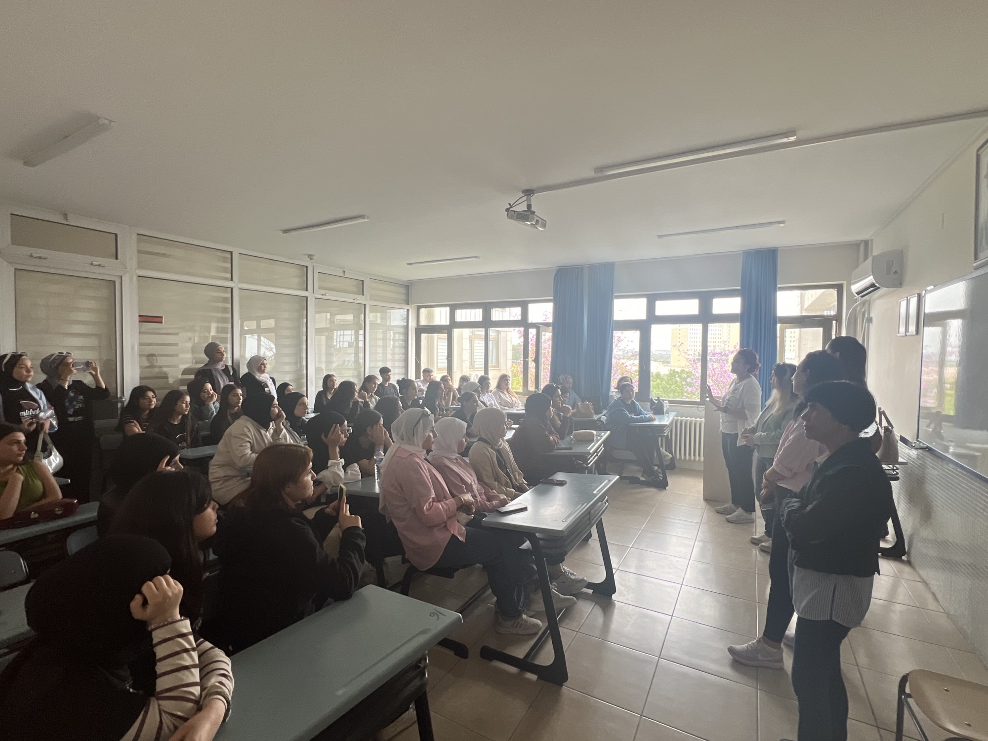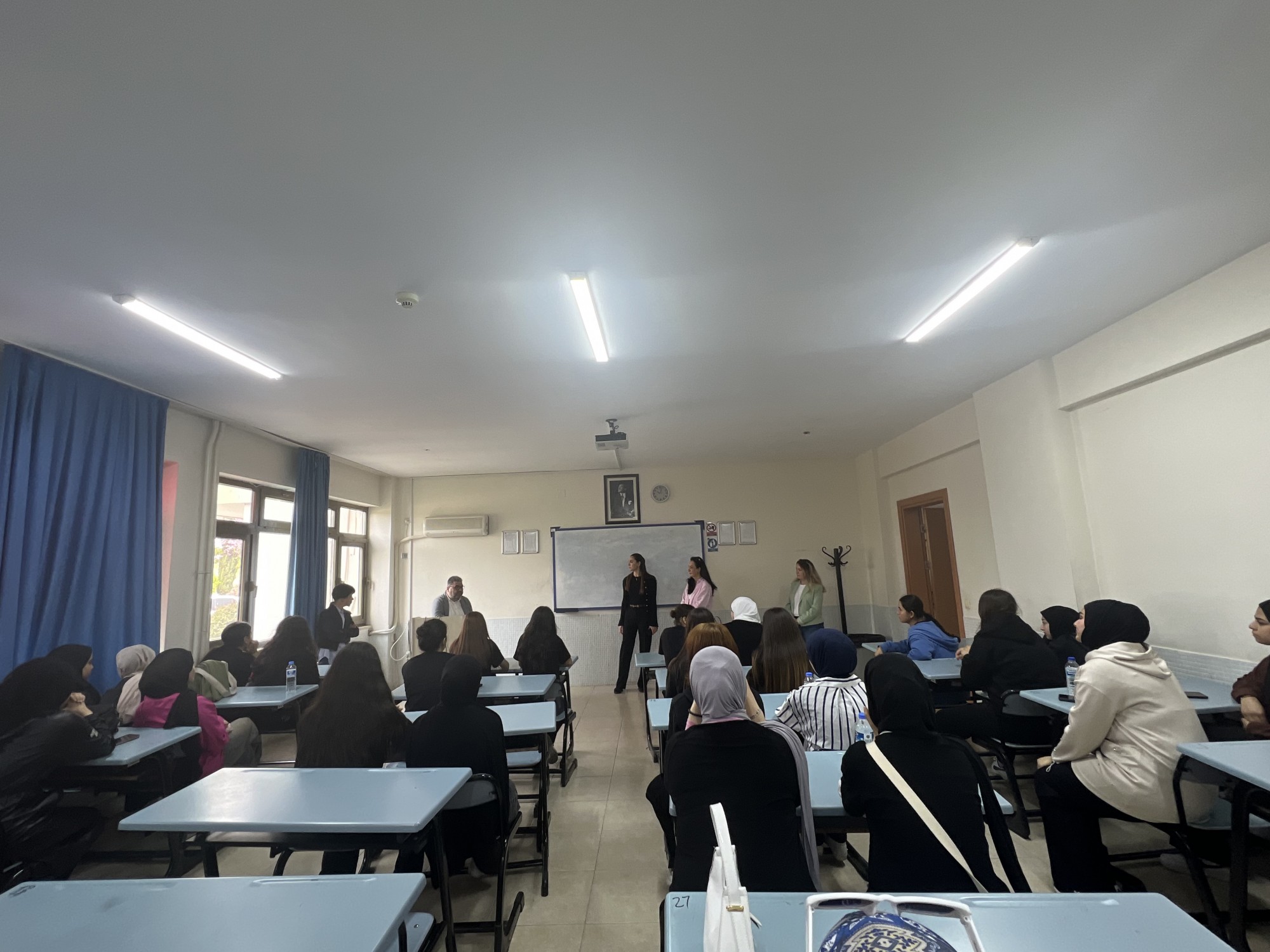 Açılış konuşmasının ardından, Öğr. Gör. Burcu Pekduyurucu ve Öğr. Gör. Yazbahar Çetin Doğan birlikte öğrencilere yönelik bir motivasyon konuşması gerçekleştirdi. Konuşmada, bölümün sunduğu akademik ve teknik imkânlar, staj ve uygulamalı eğitim süreçleri ile mezuniyet sonrası kariyer fırsatları hakkında detaylı bilgiler paylaşıldı. Öğrencilere, doğru kariyer planlaması yapmaları konusunda önerilerde bulunularak, hedef belirlemenin önemi vurgulandı. Motivasyon konuşmasının ardından, öğrenciler sınıfları gezme ve bazı derslere katılma fırsatı buldu. Böylece eğitim ortamını yerinde gözlemleme ve öğrenim sürecini deneyimleme imkânı yakaladılar. Ziyaret boyunca öğrenciler, öğretim elemanlarına ve mevcut öğrencilere merak ettikleri soruları sorma şansı da buldu. Konuşmaların ardından bölüm öğretim elemanları Öğr. Gör. Özlem Erdoğan Or ve Öğr. Gör. Abdülmecit Mısır da öğrencilere eşlik ederek, bölüm hakkında ek bilgiler sundular ve öğrenci deneyimlerini paylaştılar.