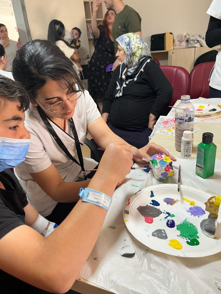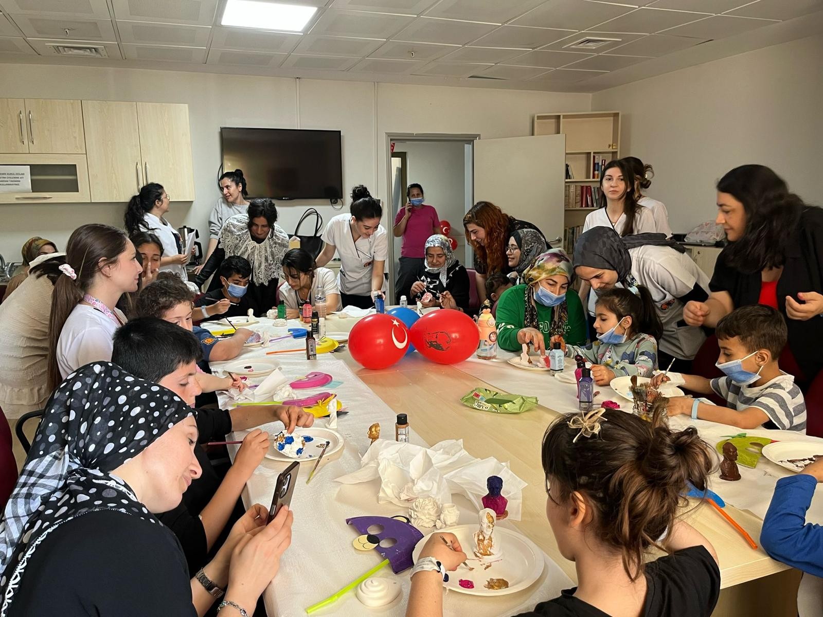 Tiyatro gösteriminin ardından, Halk Sağlığı Hemşireliği Anabilim Dalı tarafından düzenlenen boyama etkinlikleri ve müzik eşliğindeki aktivitelerle çocuklara ve ebeveynlerine neşeli bir bayram günü armağan edildi.