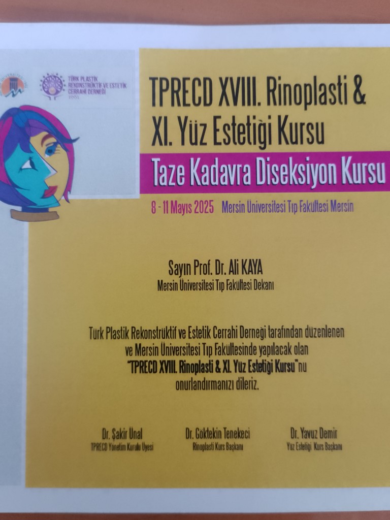 Türk Plastik Rekonstrüktif ve Estetik Cerrahi Derneği tarafından düzenlenen TPRECO XVIII. Rinoplasti & XI. Yüz Estetiği Kursu 08-11 Mayıs 2025 tarihleri arasında Fakültemizde yapılacaktır.