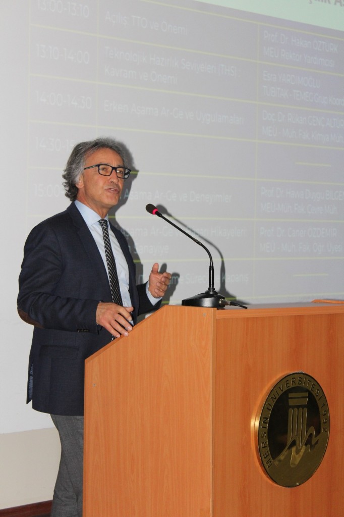 Rektör Yardımcımız Prof. Dr. Ahmet Hakan Öztürk “TTO’lar ve Önemi” konusunda bir açış konuşmasını gerçekleştirdi. Teknoloji Transfer Ofislerini insan vücudundaki köprü diye isimlendiren pons yapısına benzeten Prof. Dr. Ahmet Hakan Öztürk, “Fikirden ticarileşmeye giden yolculuğun en kritik yapı taşlarından birisi olan Teknoloji Transfer Ofislerinin önemi ve bu yolculuğun duraklarını konuşmak üzere toplandık. Bu süreçler hem ulusal, hem uluslararası boyutlarda hem de Mersin TTO boyutunda benzer şekilde çalışmaktadır. TTO’lar tüm dünyada olduğu gibi üniversitelerde üretilen bilginin sadece raflarda kalmaması, dünyada bir karşılık bulabilmesi için köprü görevi görmektedir. İnsan hayatı için az önce bahsettiğim organ ne kadar önemliyse bu fikirden ticarileşmeye giden süreçte de TTO, hem üniversitelerde hem de araştırma ilgilenen tüm kurumlarda önemlidir.” dedi.