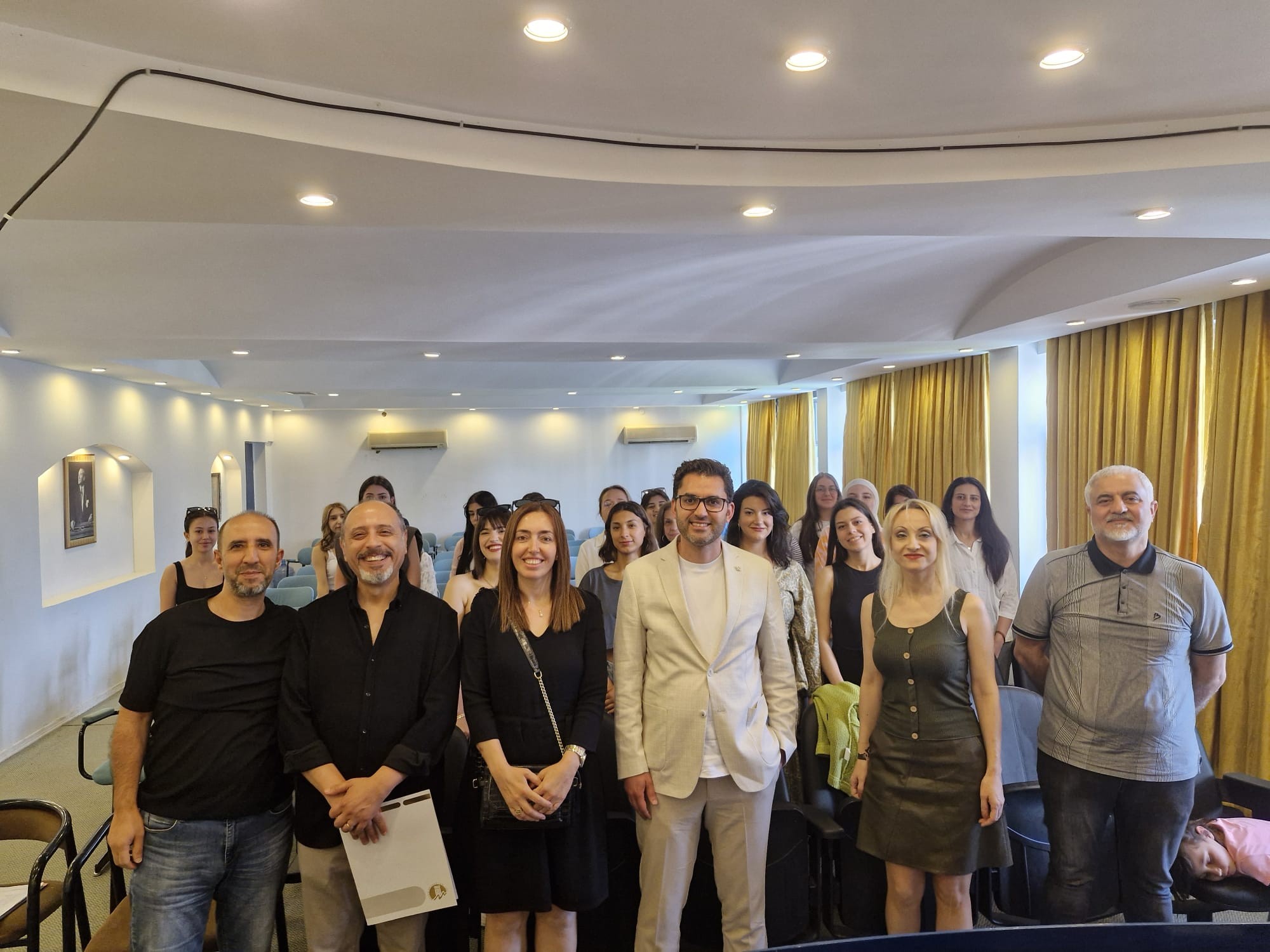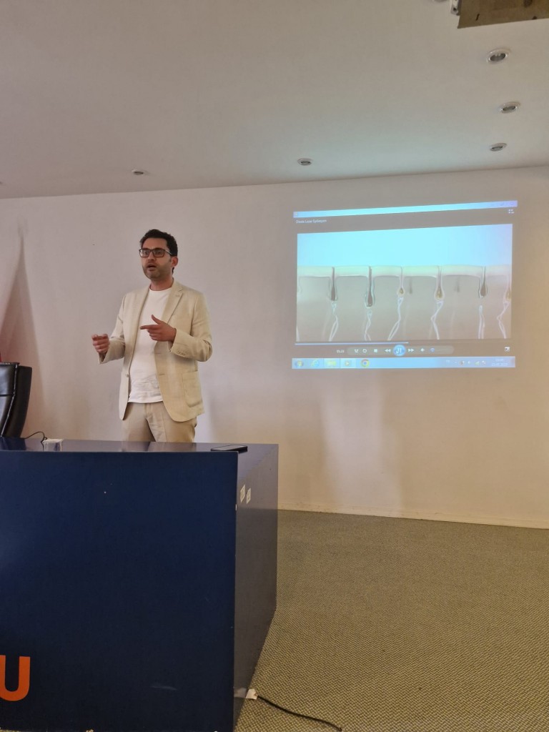 Meslek Yüksekokulumuzun konferans salonunda Saç ve Güzellik Hizmetleri bölüm öğretim elemanları, öğrencilerimizin katılımı ile Omega Lazer Epilasyon Firması & 3M Güzellik Salonu işbirliğiyle düzenlenen eğitim semineri konuşmacı olarak katılan mezun öğrencimiz Öner ÖZPOLAT ve Fatih KOCA' nın katılımları ile gerçekleştirildi. Kendilerine değerli katkılarından dolayı Müdürümüz Doç. Dr. Sertaç GÖKTAŞ adına teşekkür belgeleri Bölüm Başkanı Öğr.Gör.Rifat AYTAR tarafından takdim edildi.