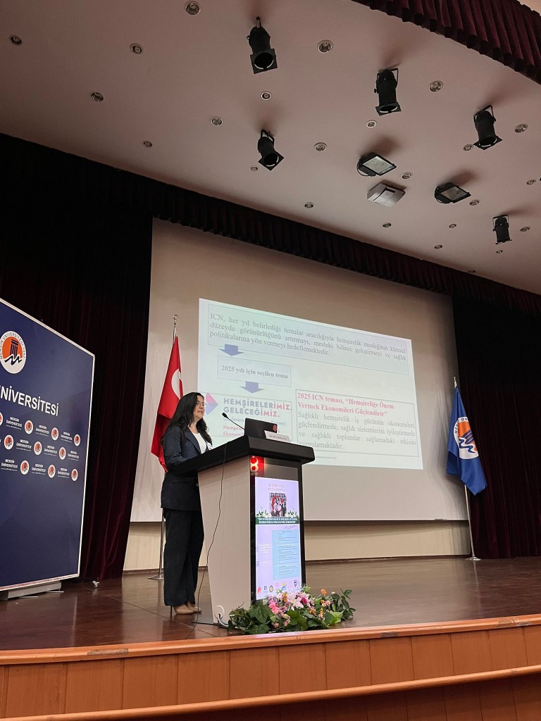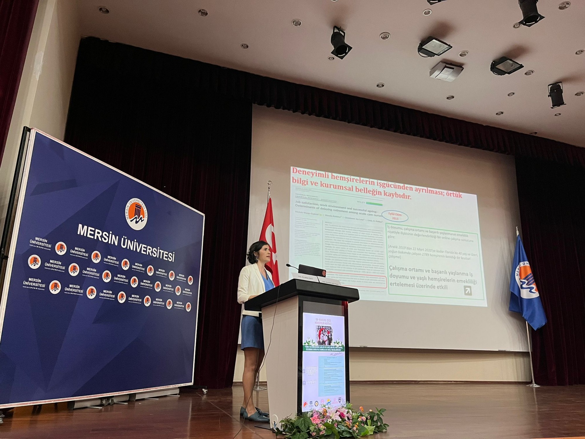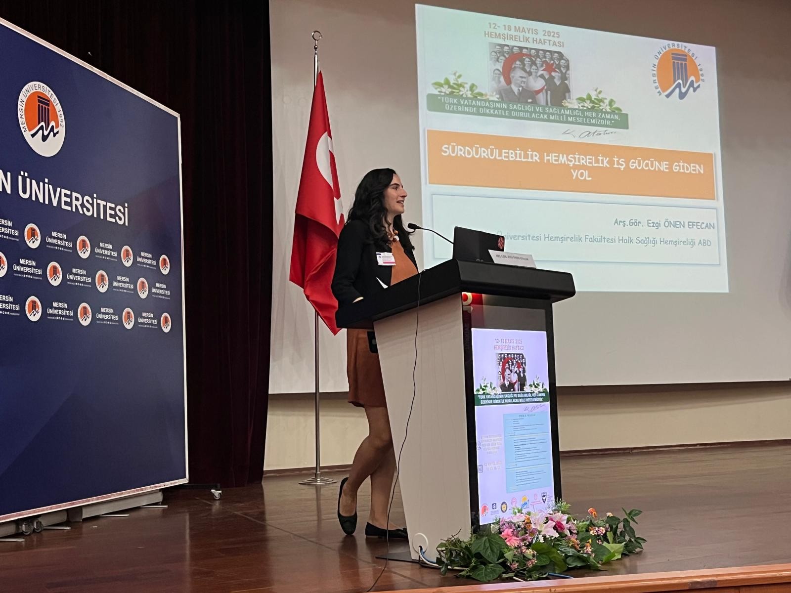 THD Mersin Şube Başkanı Dr. Hemşire Melek Gülgün Altıntaş konuşmasında, sağlıklı toplumları oluşturmada ve nitelikli hemşirelik hizmetlerinin sunumunda, hemşirelerin eğitim, mesleki kimlik ve uzmanlık alanlarının dikkate alınması gerekliliğini vurguladı. Tarsus Üniversitesi Dekanı Prof. Dr. Duygu Sönmez Düzkaya, güçlü sağlık sistemleri oluşturmada, hemşirelerin emeğine değer vermenin ve çalışma koşullarını iyileştirmenin önemine dikkat çekti. Mersin Üniversitesi Hemşirelik Fakültesi Dekanı Prof. Dr. Duygu Vefikuluçay Yılmaz, Klinikte görev yapan hemşirelerimize yatırım yapmanın, sadece bir sorumluluk değil, sağlık sisteminin geleceğini güvence altına almak için stratejik bir zorunluluk olduğunun altını çizdi. Hemşirelerin refahına yapılacak her katkının, daha dirençli, daha erişilebilir ve daha etkili sağlık sistemine dönüşmede kilit nokta olduğunu vurguladı. Arş. Gör. Yasemin Güven, ICN’nin 2025 yılı teması “Hemşireliğe Önem Vermek Ekonomileri Güçlendirir” başlıklı sunumunda, hemşirelerin fiziksel, zihinsel ve duygusal yüklerine dikkat çekerek, sağlıklı hemşirelik iş gücünün sağlık sistemleri ve toplumlar için kritik olduğunu vurguladı. “Tükenmişlikten Sürdürülebilirliğe” oturumunda, Doç. Dr. Aslıhan Çatıker hemşire iş gücü krizinin nedenlerini ve etkilerini ele aldı. Doç. Dr. Emine Öncü, yüksek işten ayrılma oranları, kuşak değişimi eksikliği ve erken emeklilik nedeniyle hem Türkiye’de hem dünyada iş gücü sıkıntısı yaşandığını aktardı. Uzman Hemşire Esra Peker ise farklı yaş gruplarındaki hemşirelerin iş üretkenliği ve emeklilik eğilimlerine yönelik araştırma sonuçlarını sundu. “Hemşirelikte İş Gücü Krizinin Ötesi” başlıklı ikinci oturumda, Doç. Dr. Köksoy Vayısoğlu ve Hemşirelik Öğrencisi Vahibe Ağrı, öğrencilerin mesleğe bağlılıklarını arttırmaya yönelik önerilerini paylaştı. Programın son konuşmasında Arş. Gör. Ezgi Önen Efecan, sürdürülebilir sağlık sistemleri için hemşirelik iş gücünün desteklenmesi gerektiğini, sosyal belirleyicilerin ve sistem verimsizliklerinin göz önünde bulundurulmasının önemini vurguladı.