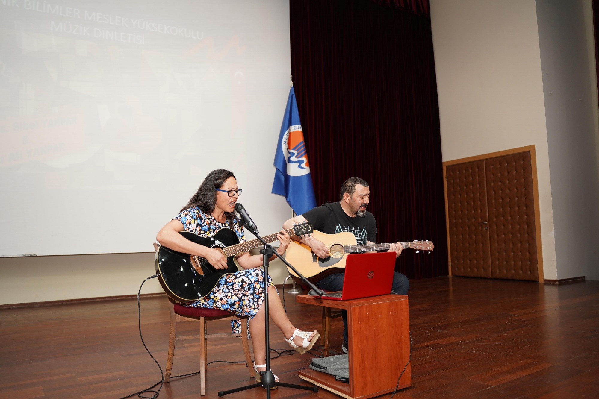 Saygı duruşu ve İstiklal Marşının okunmasının ardından başlayan tören, müzik dinletisi Öğr. Gör. Sibel Yanpar ve Hacı Yanpar tarafından müzik dinletisi ile devam etti.