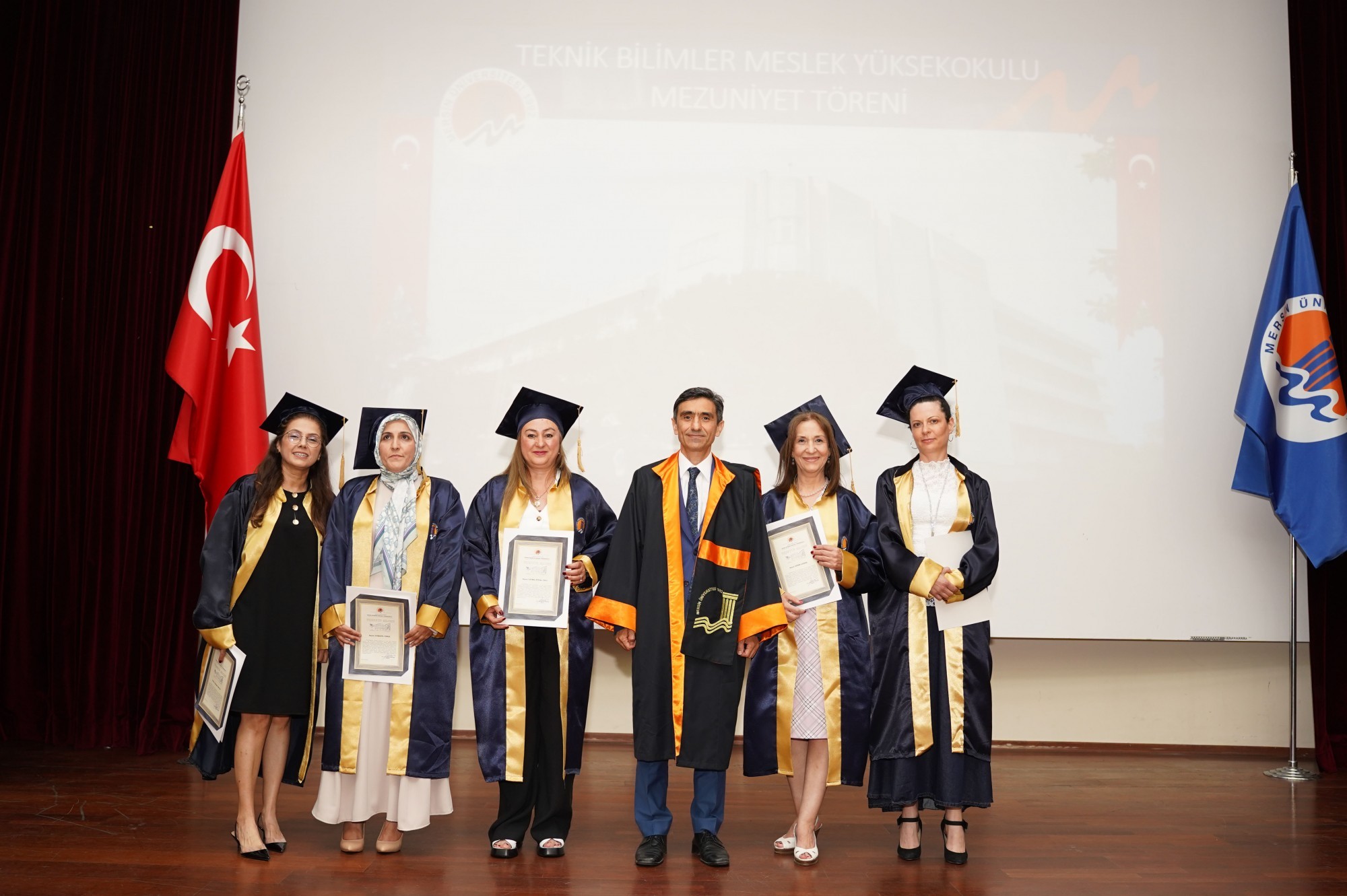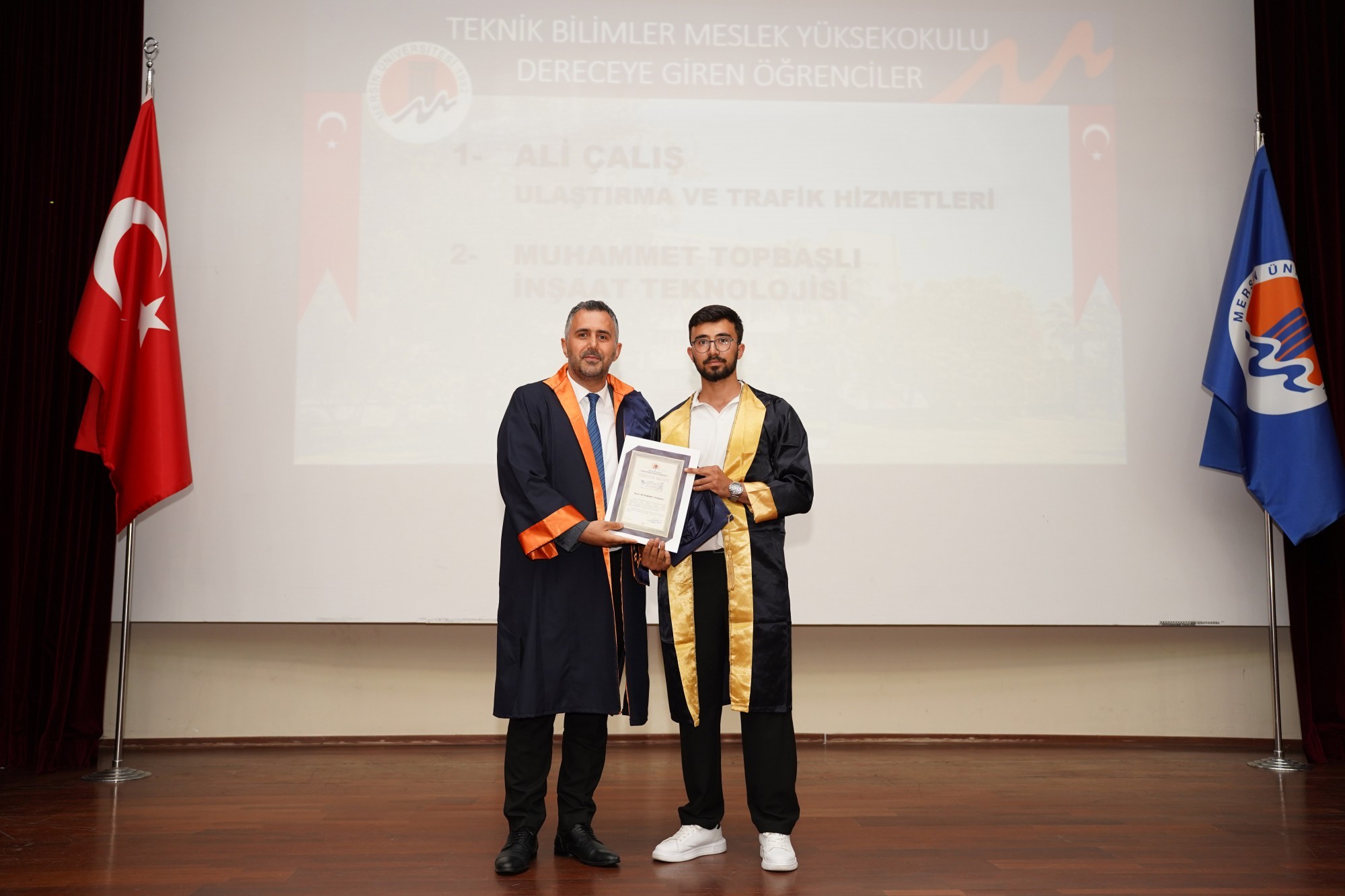 Dereceye giren öğrencilere belgelerinin takdim edilmesinin ardından, mezun olan diğer öğrencilerimize temsili diplomaları Üniversitemiz Teknik Bilimler Meslek Yüksekokulumuz öğretim elemanları tarafından takdim edildi.