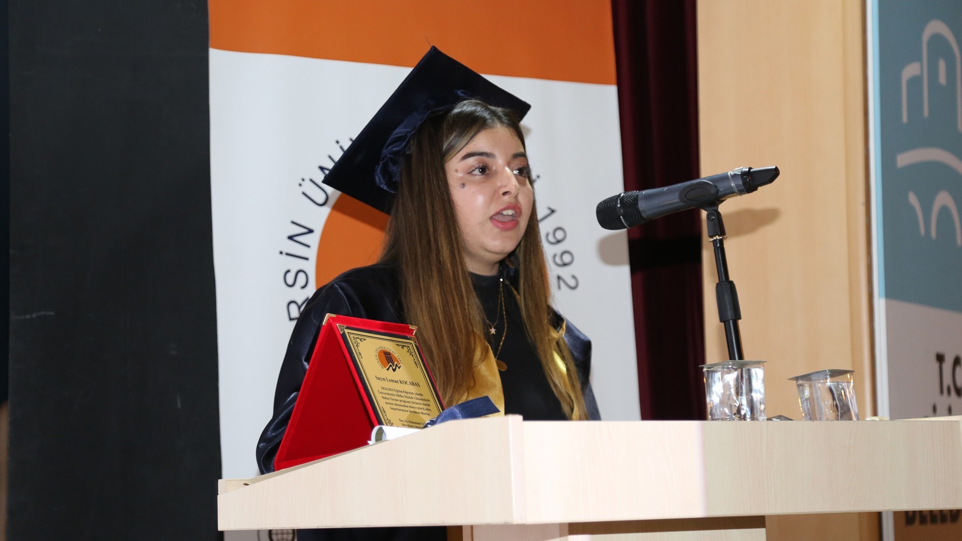 Törende söz alan Rektör Danışmanımız Prof. Dr. Tuğba Yanpar, Rektörümüz Prof. Dr. Erol Yaşar’ın selamlarını ileterek başladığı konuşmasında, “Mersin Üniversitesi, çağdaş eğitim anlayışı, bilimsel üretkenliği ve öğrenci merkezli yaklaşımlarıyla Türkiye’nin saygın yükseköğretim kurumlarından biridir. Mezun olan öğrencilerimizin bilgi ve birikimleri, sadece bireysel başarı değil, toplumsal katkı anlamına da gelmektedir.” dedi.