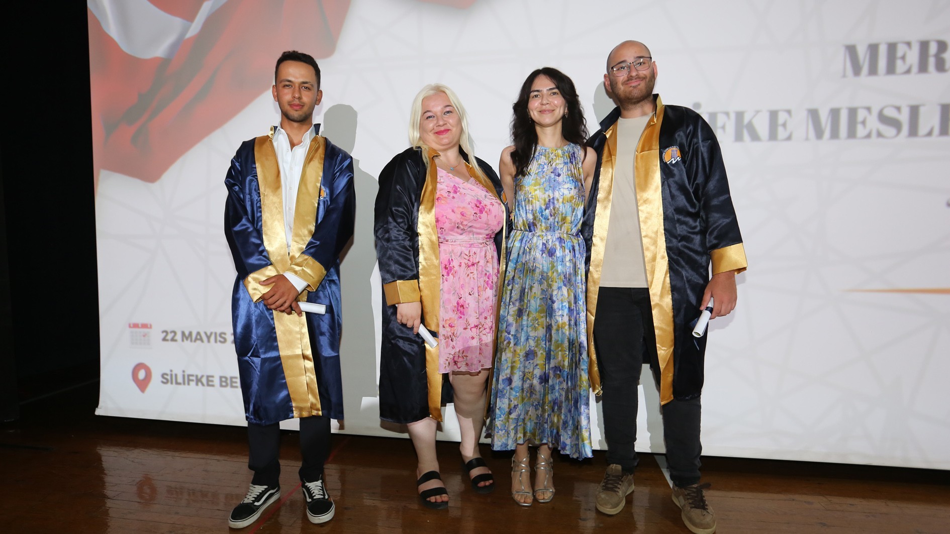 Silifke MYO mezunları, ailelerinin gururu ve öğretim üyelerinin rehberliğinde, hayatlarının yeni dönemine adım attı.