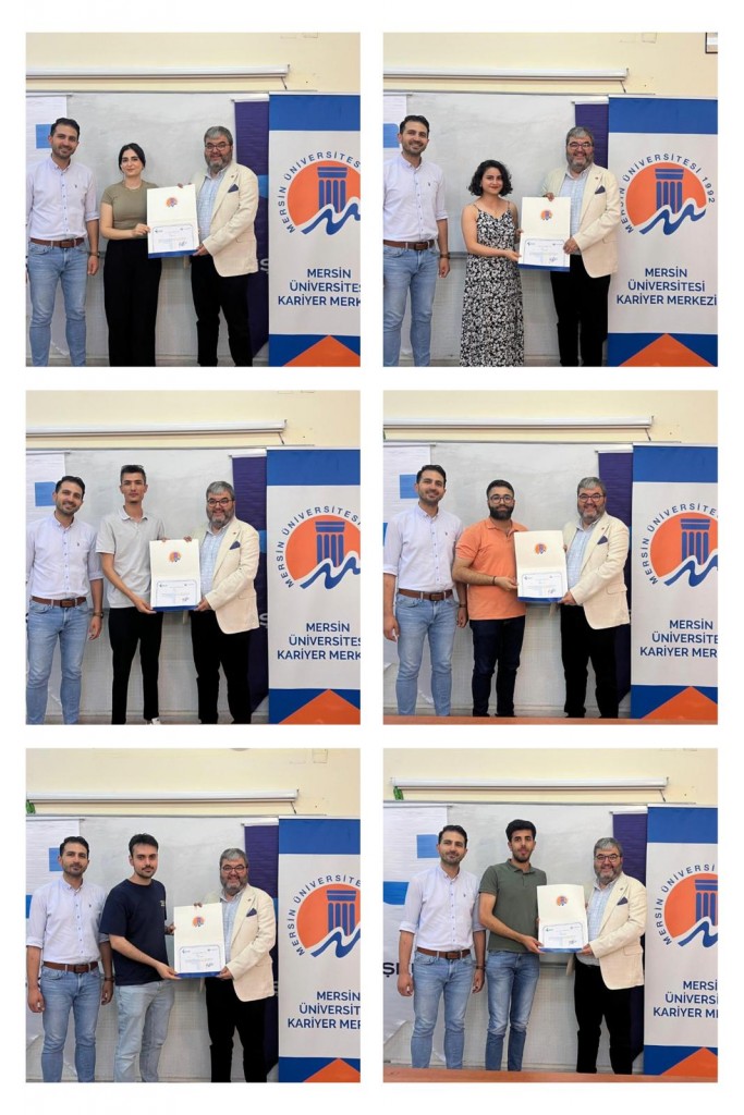 Mersin Üniversitesi Kariyer Merkezi ile İktisadi ve İdari Bilimler Fakültesi İşletme Bölümü iş birliğinde düzenlenen İş Kulübü Etkinliklerine katılan öğrencilere belgeleri Kariyer Merkezi Müdürü Prof. Dr. İlhan Ege tarafından teslim edildi.