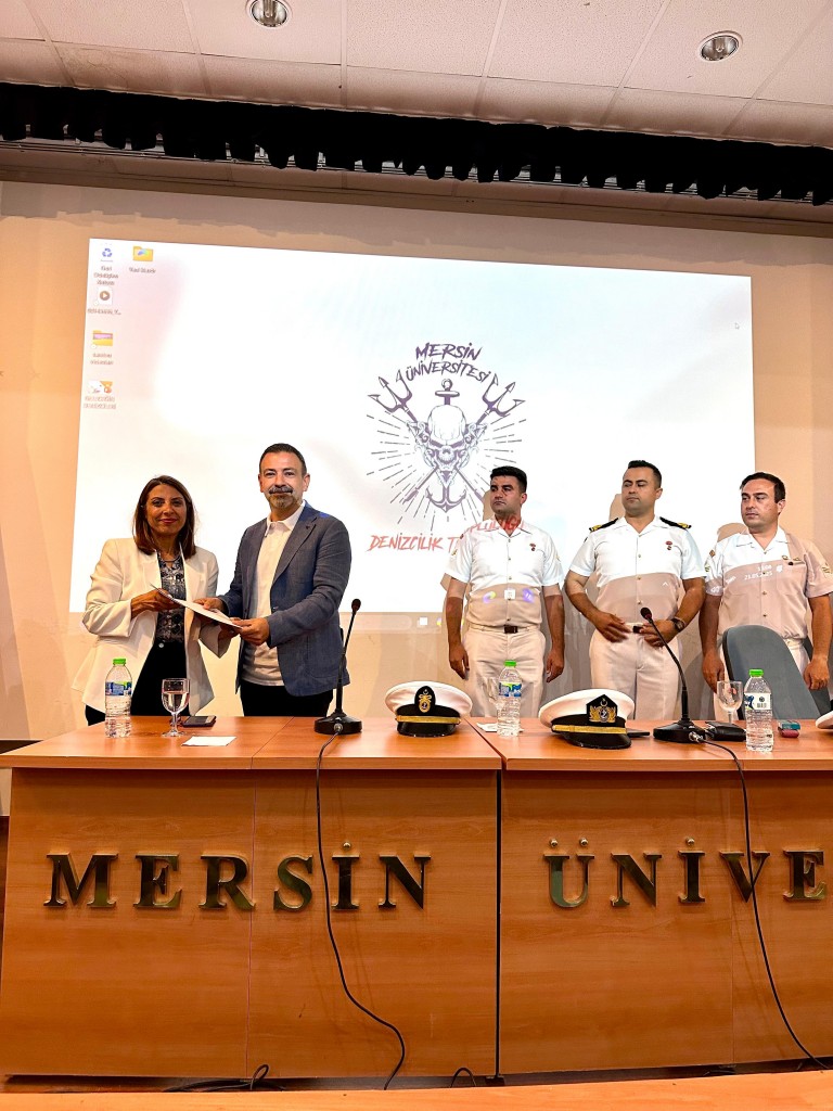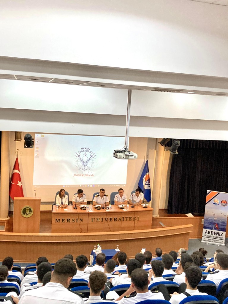 Mersin Üniversitesi Denizcilik Topluluğu olarak Denizcilik Meslek Yüksekokulu mezunu olup Sahil Güvenlik Akdeniz Bölge Komutanlığı rütbeli personeli olarak görev yapan Sayın Yasin TOKER, Sayın Furkan DEMİRŞEN, Sayın Ö. Faruk KODAY ve Sayın H. Barış İMREN’i söyleşi etkinliğimizde ağırlamanın gururunu yaşadık, kendilerine teşekkürlerimizi sunarız. Ayrıca, etkinlik çerçevesinde Sahil Güvenlik tanıtım sunumunu gerçekleştiren Mühendis Yonca YAŞAR KILINÇ’a verdiği bilgiler için teşekkürlerimizi sunarız.
