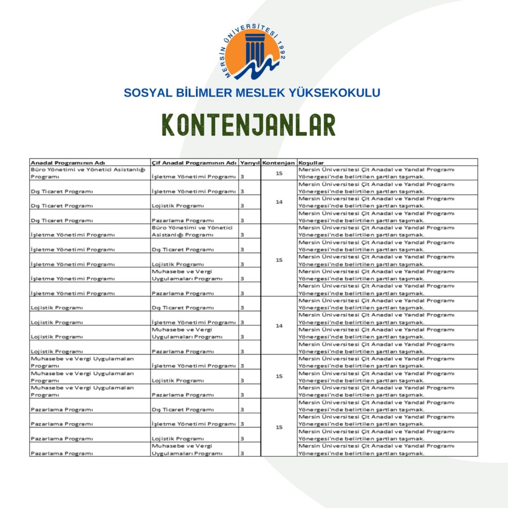 Sosyal Bilimler Meslek Yüksekokulu bünyesindeki programlar için belirlenen kontenjanlar için tıklayınız.
