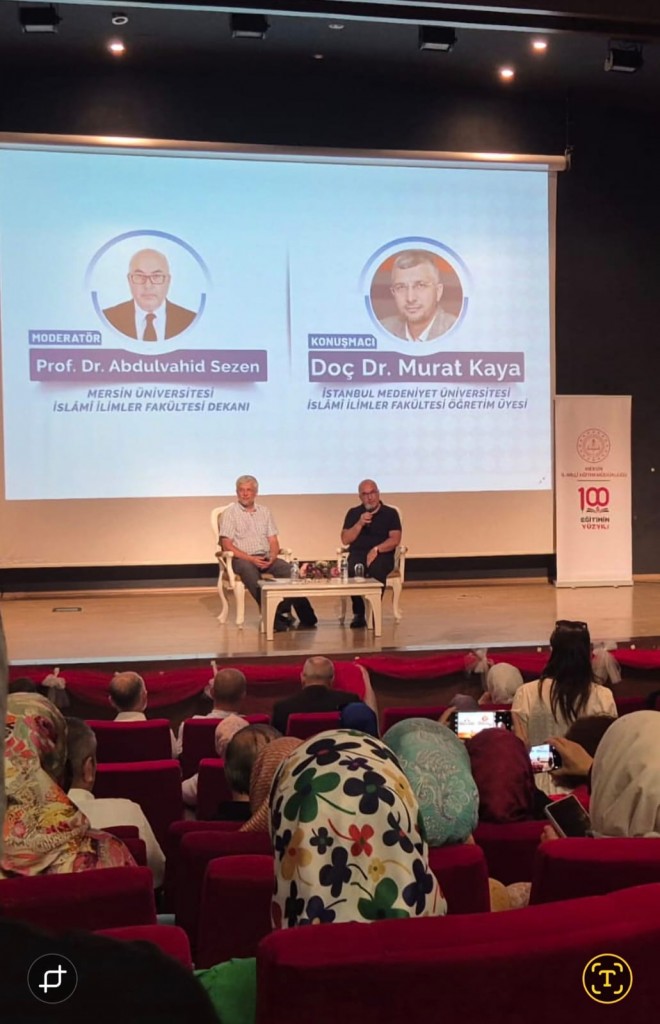 Mersin Üniversitesi İlahiyat Fakültesi Dekanı Prof. Dr. Abdulvahid Sezen'in moderatörlüğünde, İstanbul Medeniyet Üniversitesi İslami İlimler Fakültesi Öğretim Üyesi Doç. Dr. Murat Kaya "Peygamber Efendimiz Hz. Muhammed (SAV) ve Aile" konulu bir konferans verdi. Doç. Dr. Kaya, İslam'da ailenin yeri ve Hz. Peygamber'in aile hayatına dair örnek davranışlarını ele alarak katılımcılara önemli bilgiler sundu.