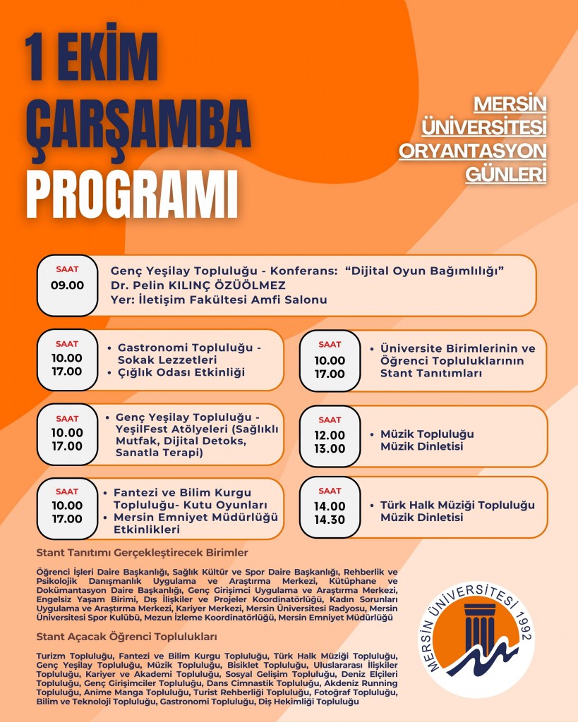 Mersin Üniversitesi 2025-2026 Eğitim Öğretim Yılı Oryantasyon Günleri Programı