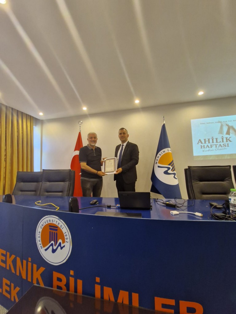 Bu yıl Türkiye genelinde 37.cisi düzenlenen Ahilik haftası kutlamaları çerçevesinde Teknik Bilimler MYO konferans salonunda okulumuzun müdürü Doç.Dr.Sertaç GÖKTAŞ, Öğretim Elemanları ve öğrencilerimizin katılımı ile okulumuzun öğretim görevlisi Rifat AYTAR tarafından "Ahilik Kültürünün Ekonomiye, Sosyal Yaşama ve Eğitime etkileri" konulu konferans 01Ekim 2025 tarihinde saat 13.00'de konferans salonunda gerçekleştirilmiştir.