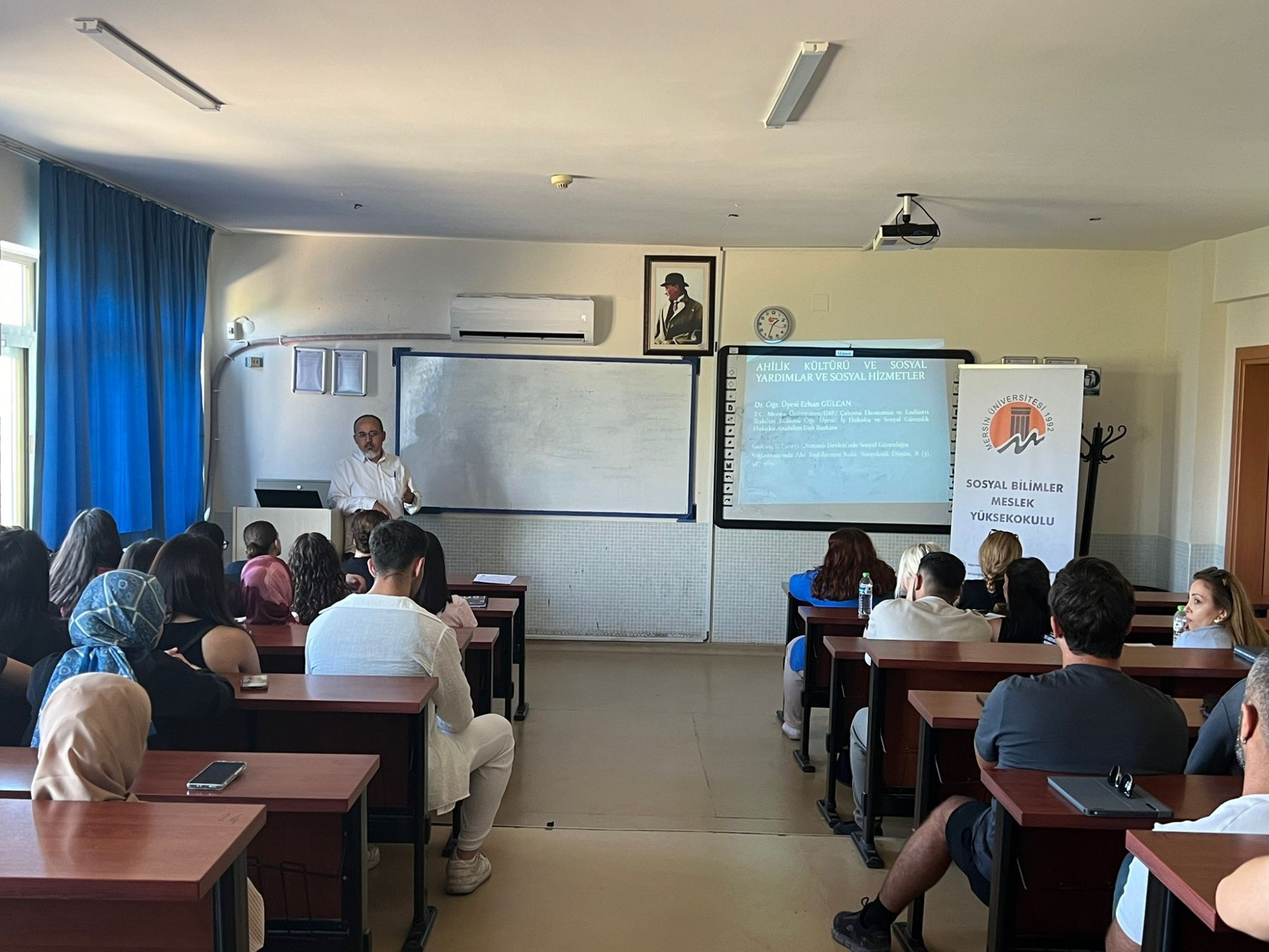 Mersin Üniversitesi Sosyal Bilimler Meslek Yüksekokulu, Kariyer Merkezi iş birliğiyle 38. Ahilik Haftası kapsamında bir konferans düzenledi. Etkinlik, 6 Ekim 2025 Pazartesi günü Sosyal Bilimler MYO Derslik 10’da gerçekleştirildi.