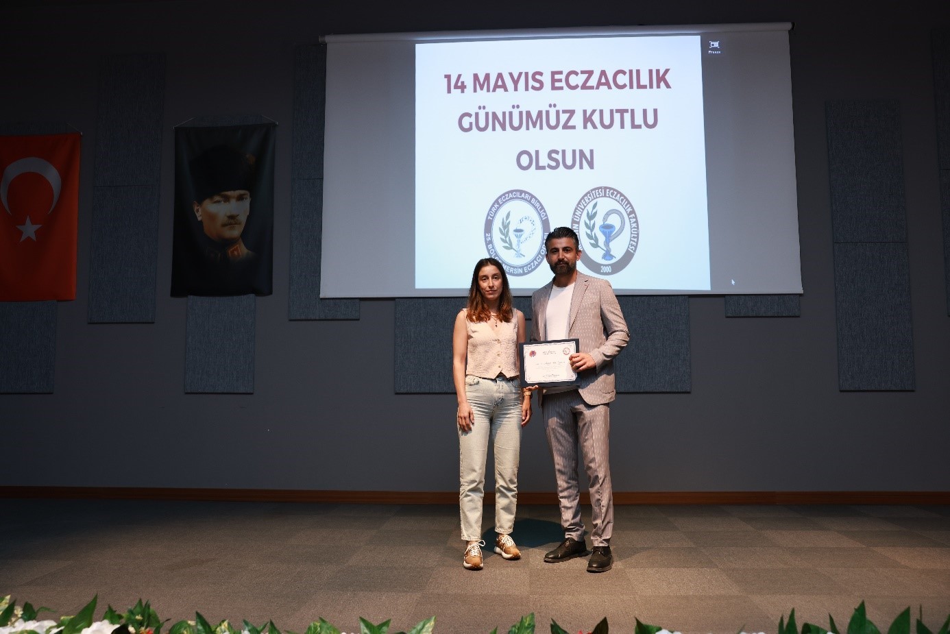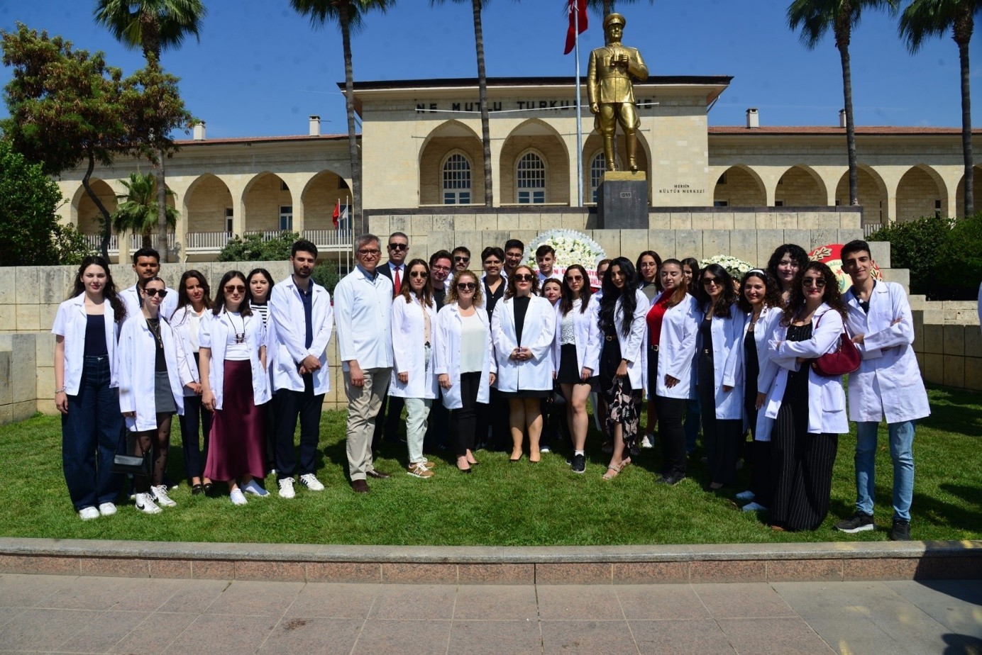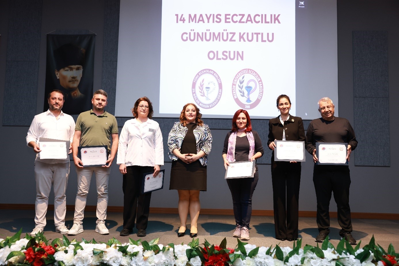 14 Mayıs 2025 Çarşamba günü, 1839 yılında Mekteb-i Tıbbiye-i Şahane’de açılan ilk eczacılık sınıfı ile ülkemizde eczacılığın akademik bir meslek haline gelişinin 186. yılı olan “14 Mayıs Eczacılık Günü” kutlamaları, Cumhuriyet Alanı’ndaki Atatürk Anıtı’na çelenk sunulmasıyla başladı. TEB 25. Bölge Mersin Eczacı Odası tarafından düzenlenen 14 Mayıs Eczacılık Günü Etkinlikleri, Mersin Eczacı Odası’nın MESAP Konferans Salonu’ndaki törenle devam etti. Törene; Rektör Yardımcımız Prof. Dr. Ahmet Hakan ÖZTÜRK, Fakültemiz Dekanı Prof. Dr. Necmiye CANACANKATAN, Mersin Tabip Odası Yönetim Kurulu Üyesi Dr. Abbas KOLUAÇIK, Türk Eczacıları Birliği Merkez Heyeti Üyesi Uzm. Ecz. Özgün SAĞIR, 25. Bölge Mersin Eczacı Odası Başkanı Ecz. Aliye AKGÜL AYDIN, Güney Ecza Kooperatifi Genel Sekreteri Uzm. Ecz. Çağrı Erdem ÖZDEMİR, akademik ve idari personelimiz ile Eczacılık Fakültesi öğrencilerimiz katıldı. Tören, saygı duruşu ve İstiklal Marşı’nın okunmasıyla başladı.