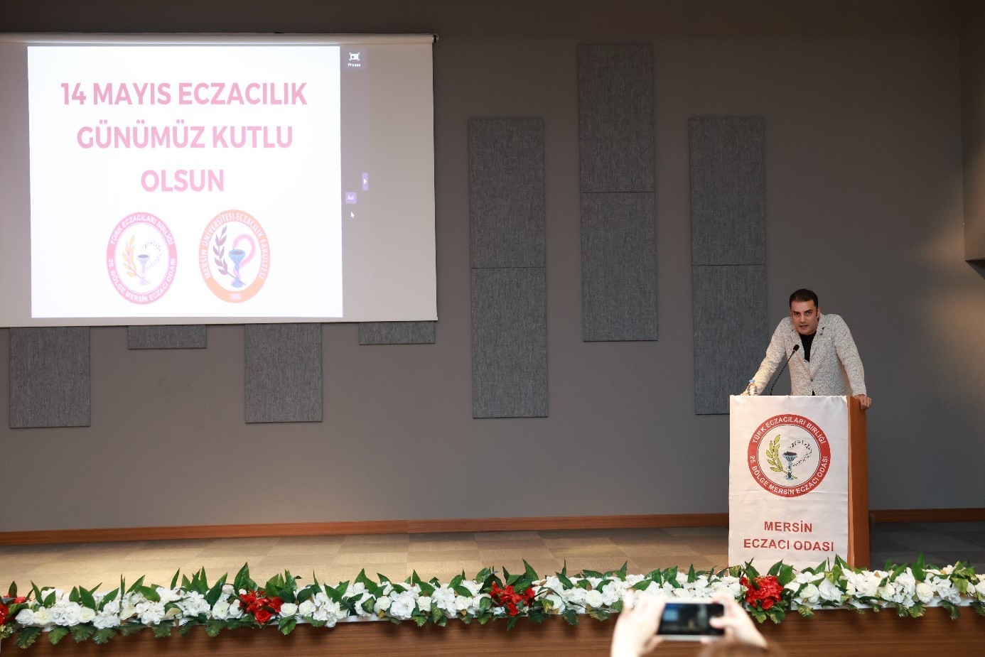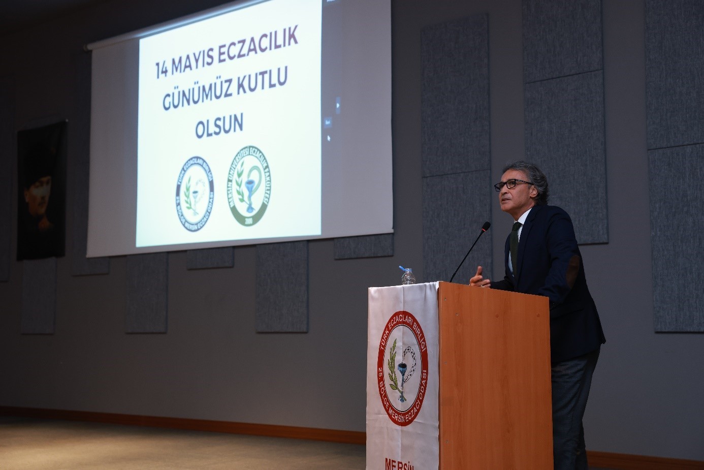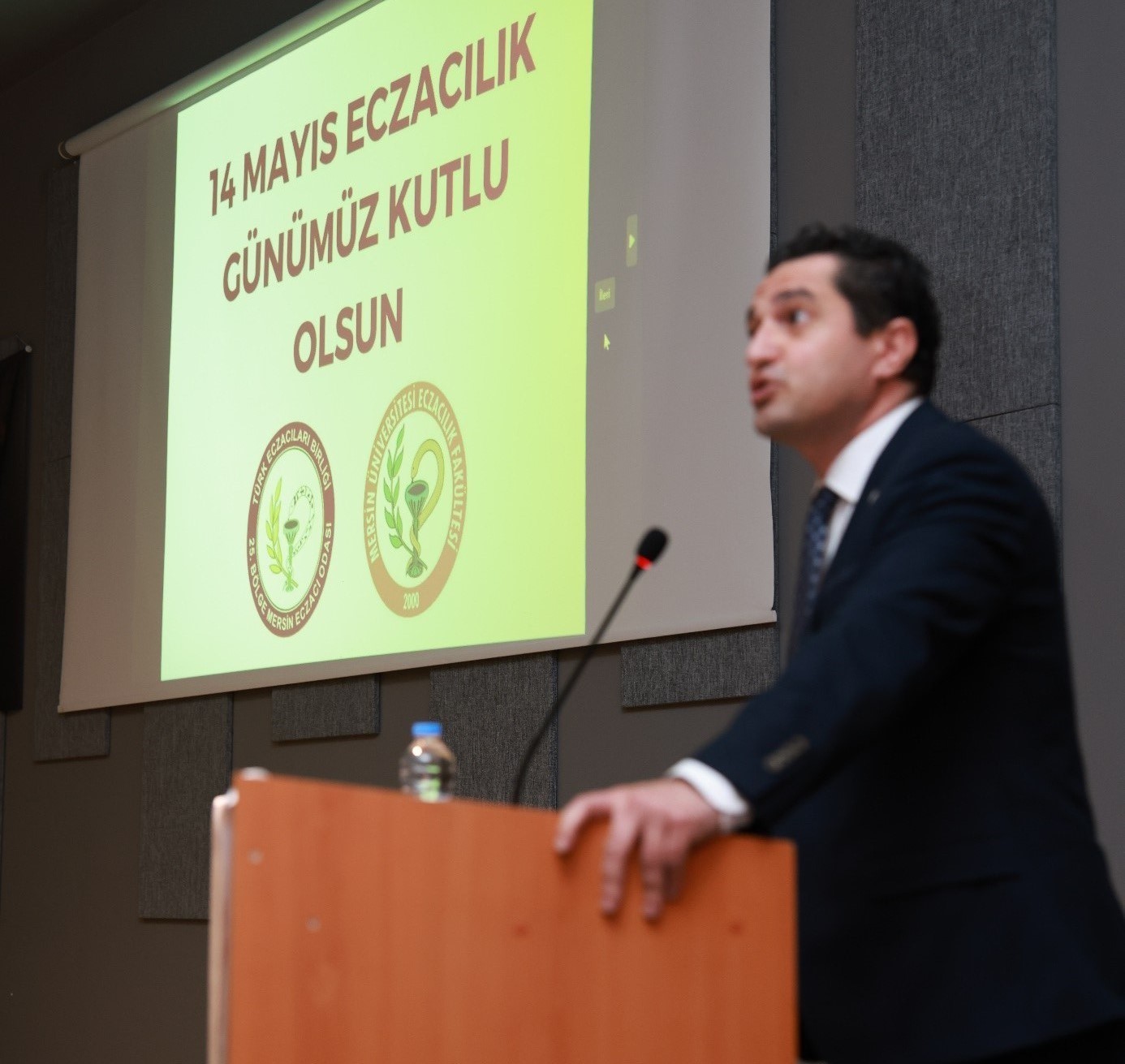 Rektör Yardımcımız Prof. Dr. Ahmet Hakan ÖZTÜRK törende “Bilimsel Eczacılığın 186. Yıldönümünü kutladığımız bu anlamlı günde hepiniz hoş geldiniz” diyerek sözlerine başladı. “14 Mayıs’ın, eczacılık faaliyetlerine ülkemizde ilk kez bilimsel bir nitelik kazandıran tarih olduğunu, eczacıların ülkemizin sağlık ordusu içerisinde çok önemli bir yere sahip ve pandemi ile depremde toplum sağlığı için en hızlı harekete geçen meslek gruplarının başında geldiğini belirtti.” “Mersin Üniversitesi Eczacılık Fakültesi’nin kurulduğu ilk günden itibaren hızla geliştiğini, eğitim programının ikinci kez akredite edilmesiyle başarısını taçlandırdığını” ifade eden Rektör Yardımcımız Prof. Dr. Ahmet Hakan ÖZTÜRK, Fakülte yönetimi ile öğretim üyelerini tebrik ederek, TEB 25. Bölge Mersin Eczacı Odasına iş birlikleri için teşekkür etti.