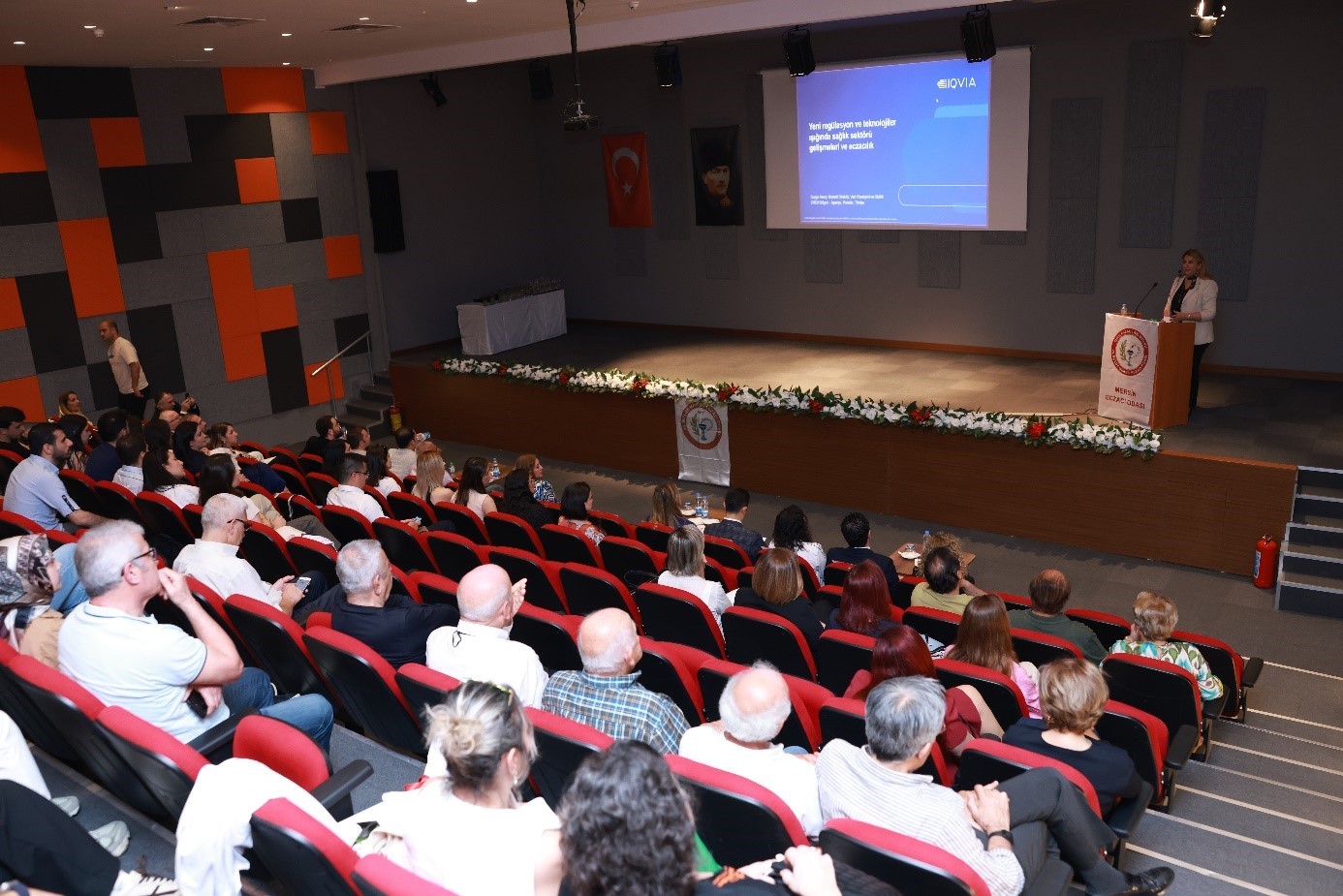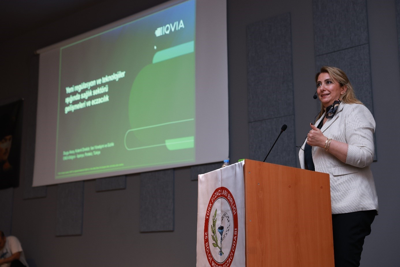 Konuşmaların ardından, Duygu AKSOY “Yeni Regülasyon ve Teknolojiler Işığında Sağlık Sektörü Gelişmeleri ve Eczacılık” başlıklı bir sunum gerçekleştirdi.