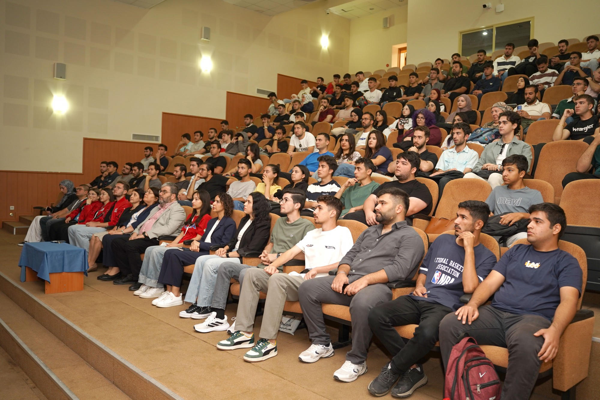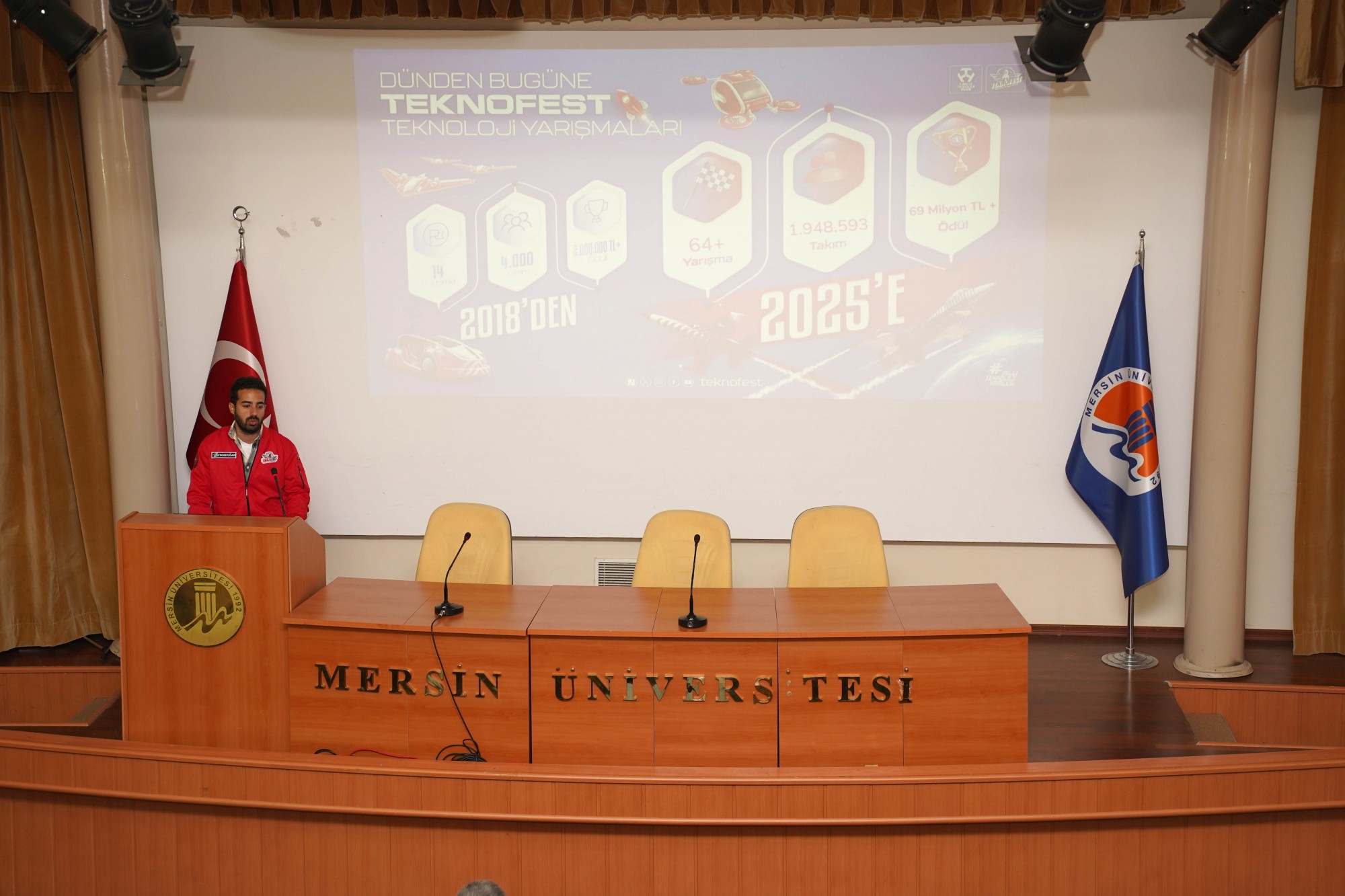 T3 Vakfı Mersin İl Sorumlusu ve TEKNOFEST Ulaşım Koordinatörü Ahmet Bozdoğan tarafından gerçekleştirilen sunumda, T3 Vakfı’nın çalışmaları, TEKNOFEST’ in hedefleri ve gençlerin Milli Teknoloji Hamlesindeki rolü üzerine detaylı bilgiler paylaşıldı.